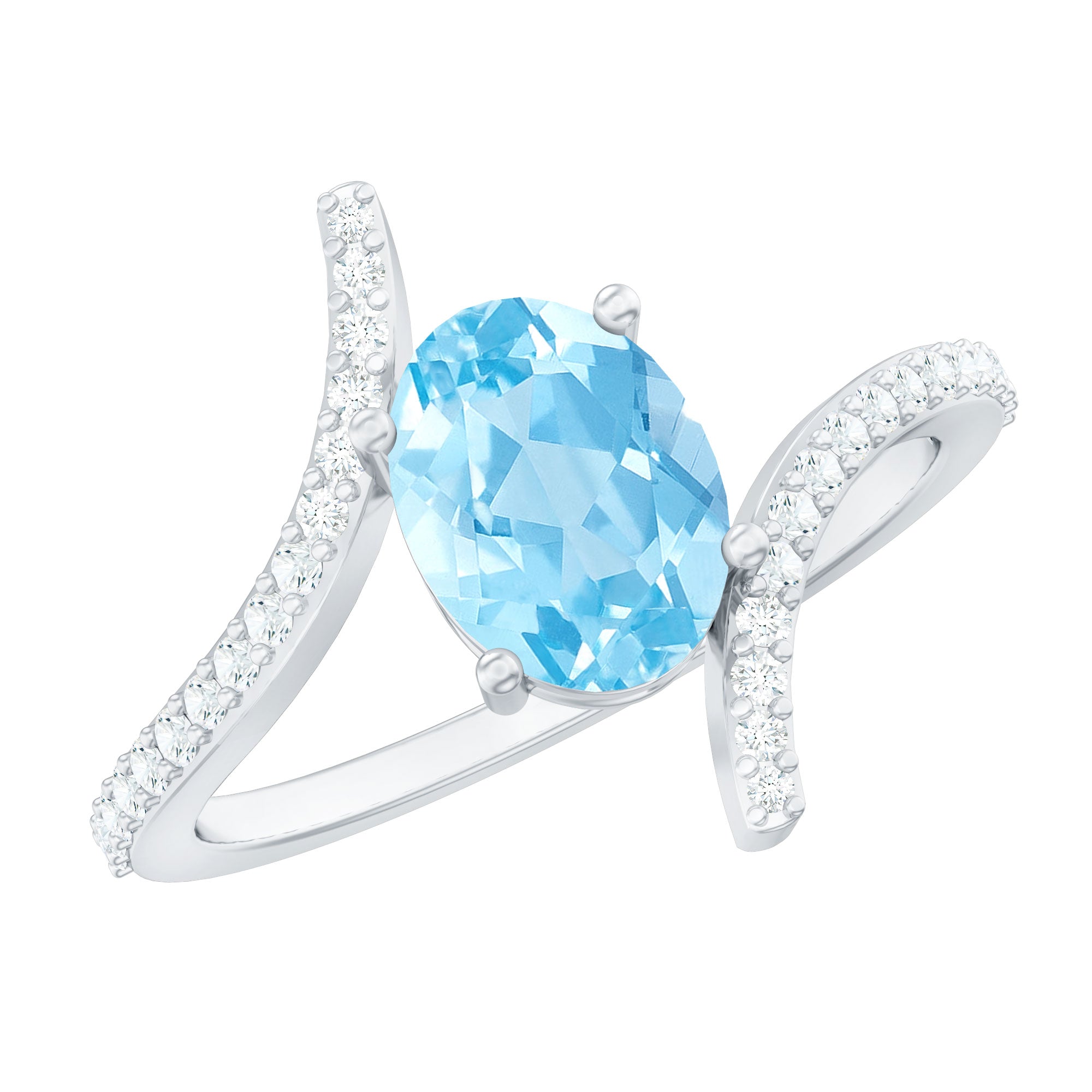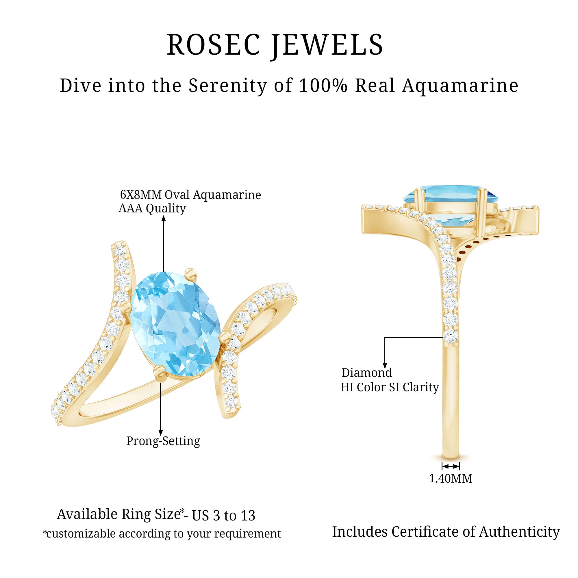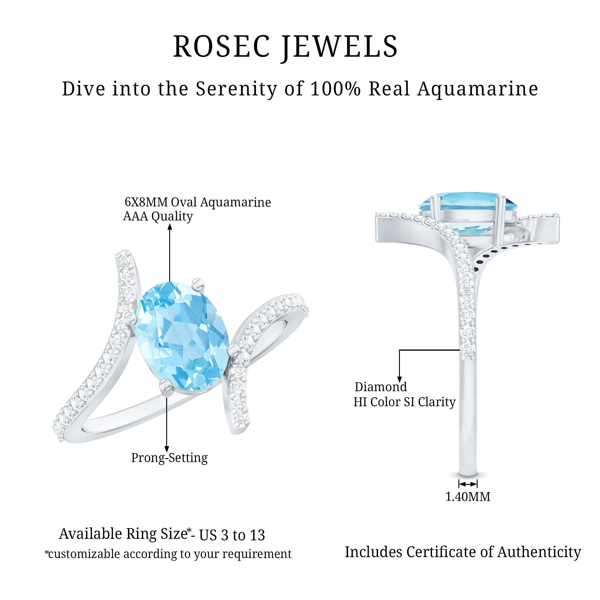 Real 6X8mm Aquamarine Oval Engagement Ring with Diamond Bypass Shank