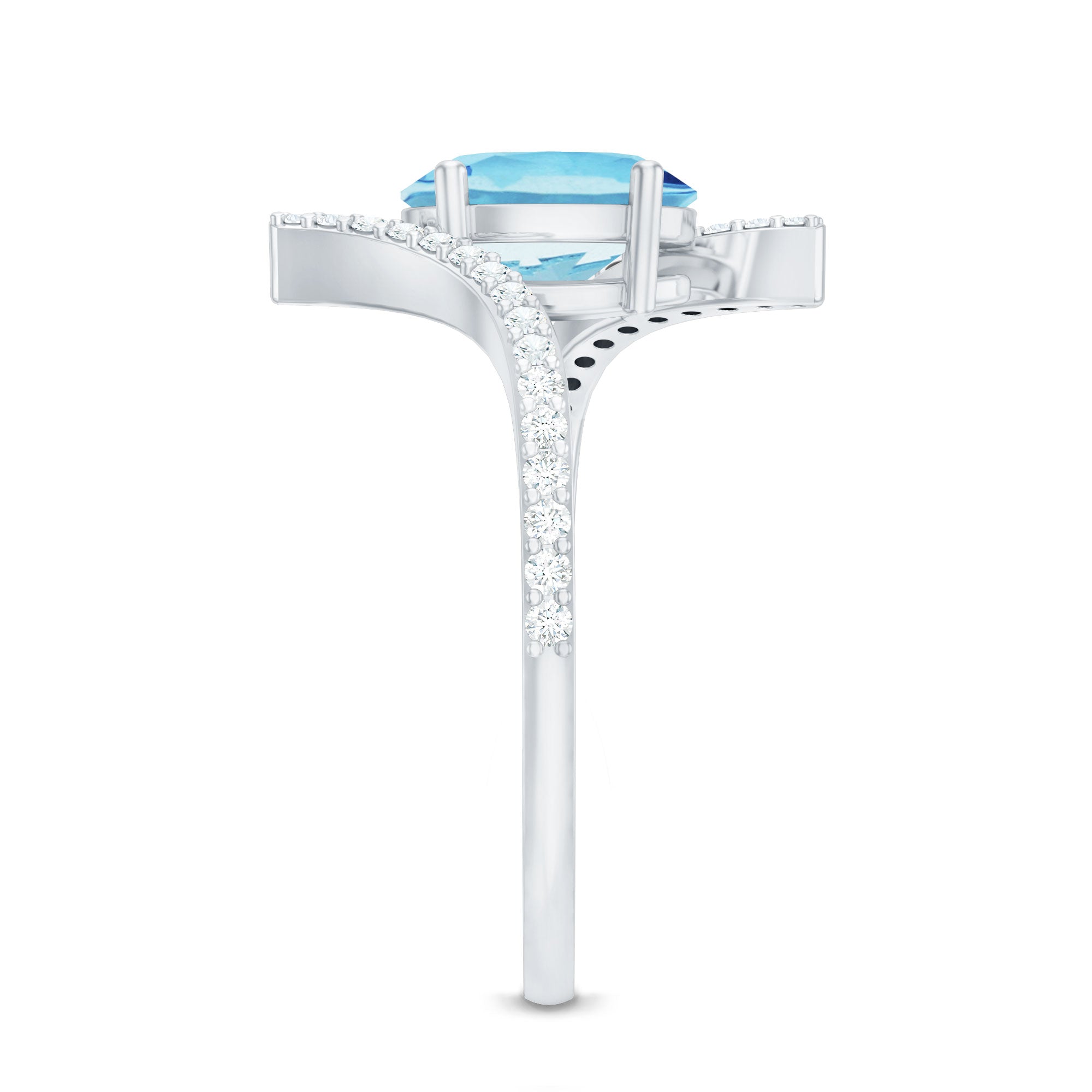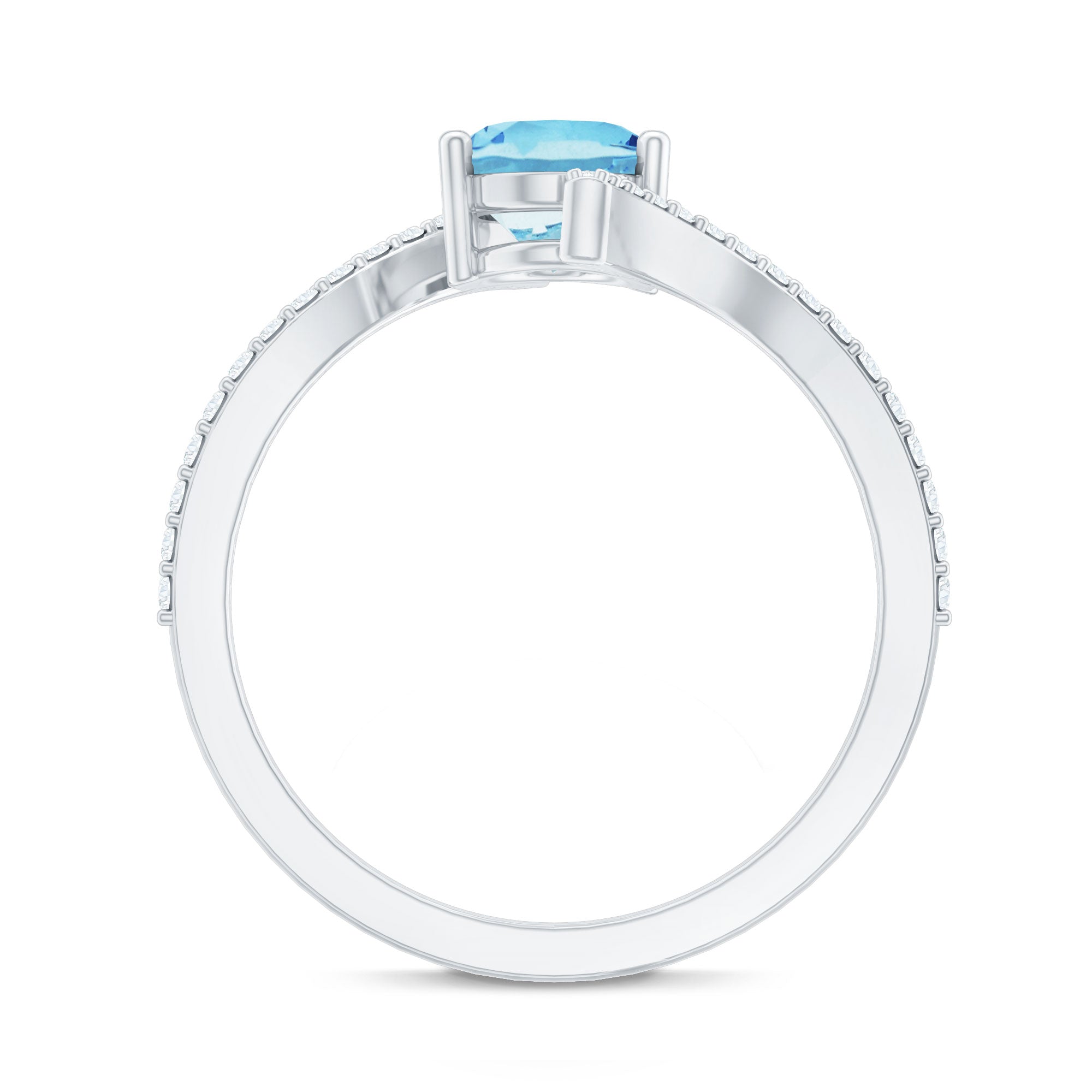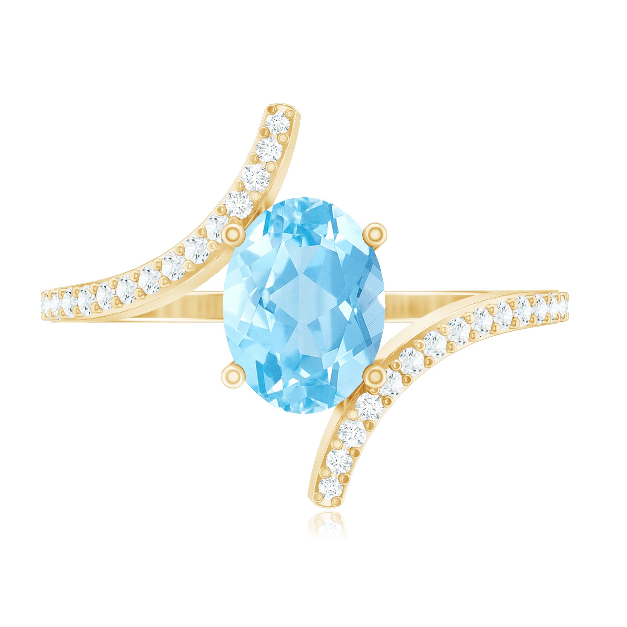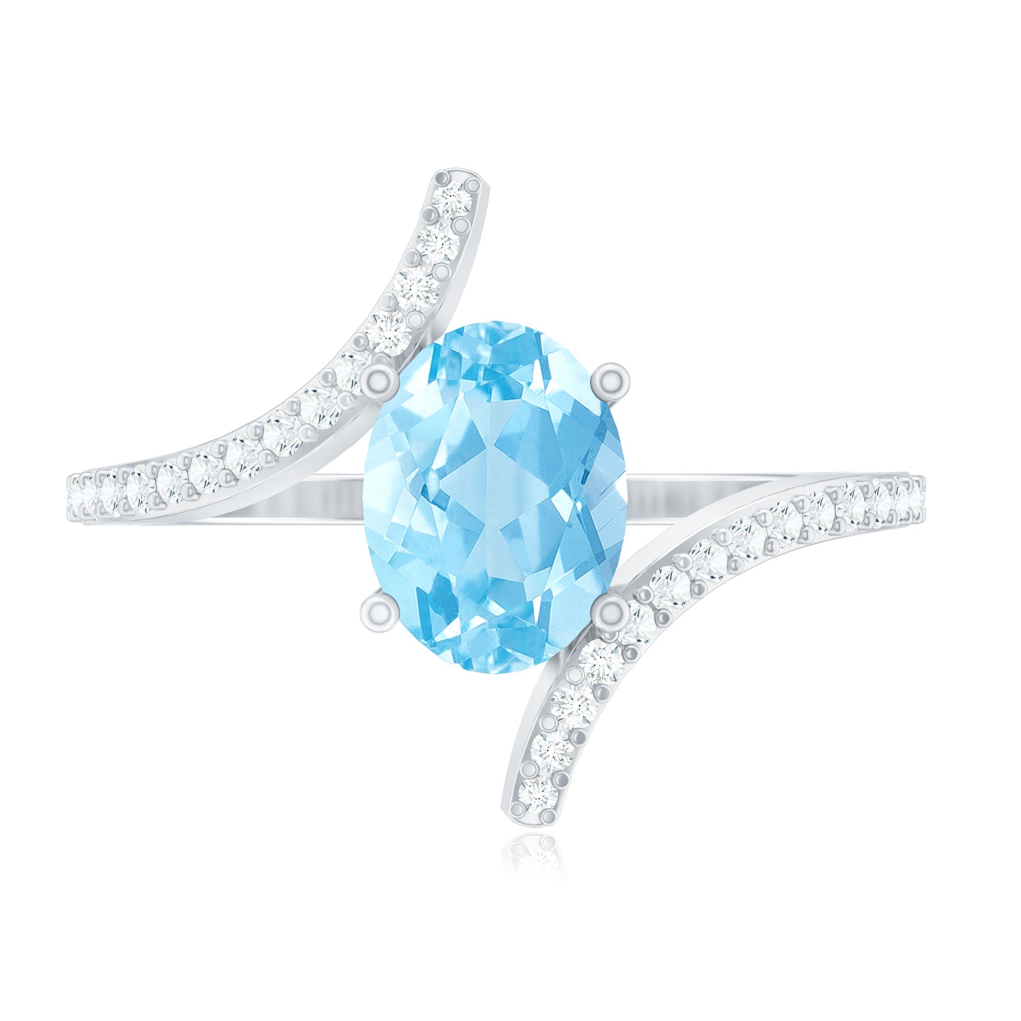 Real 6X8mm Aquamarine Oval Engagement Ring with Diamond Bypass Shank