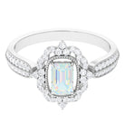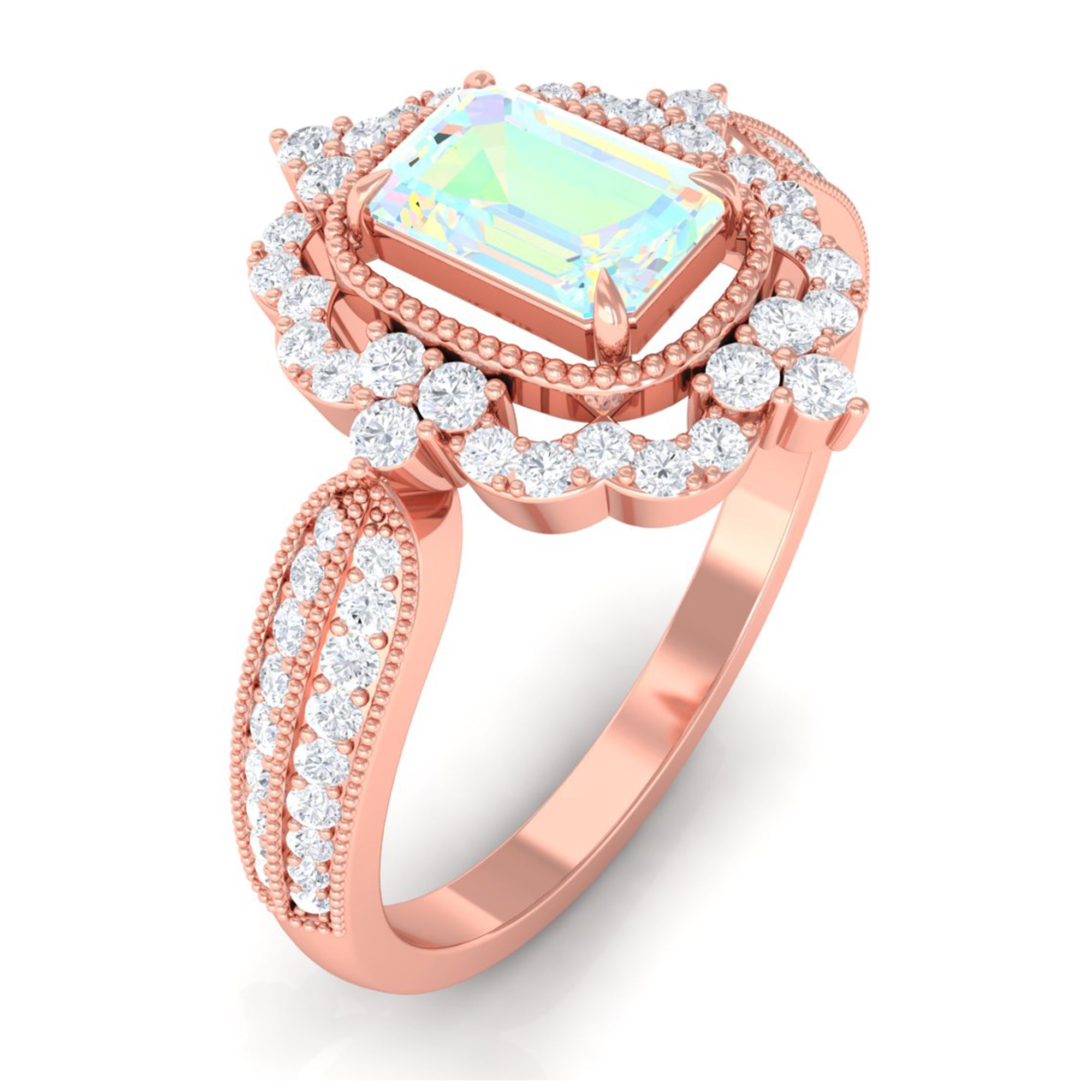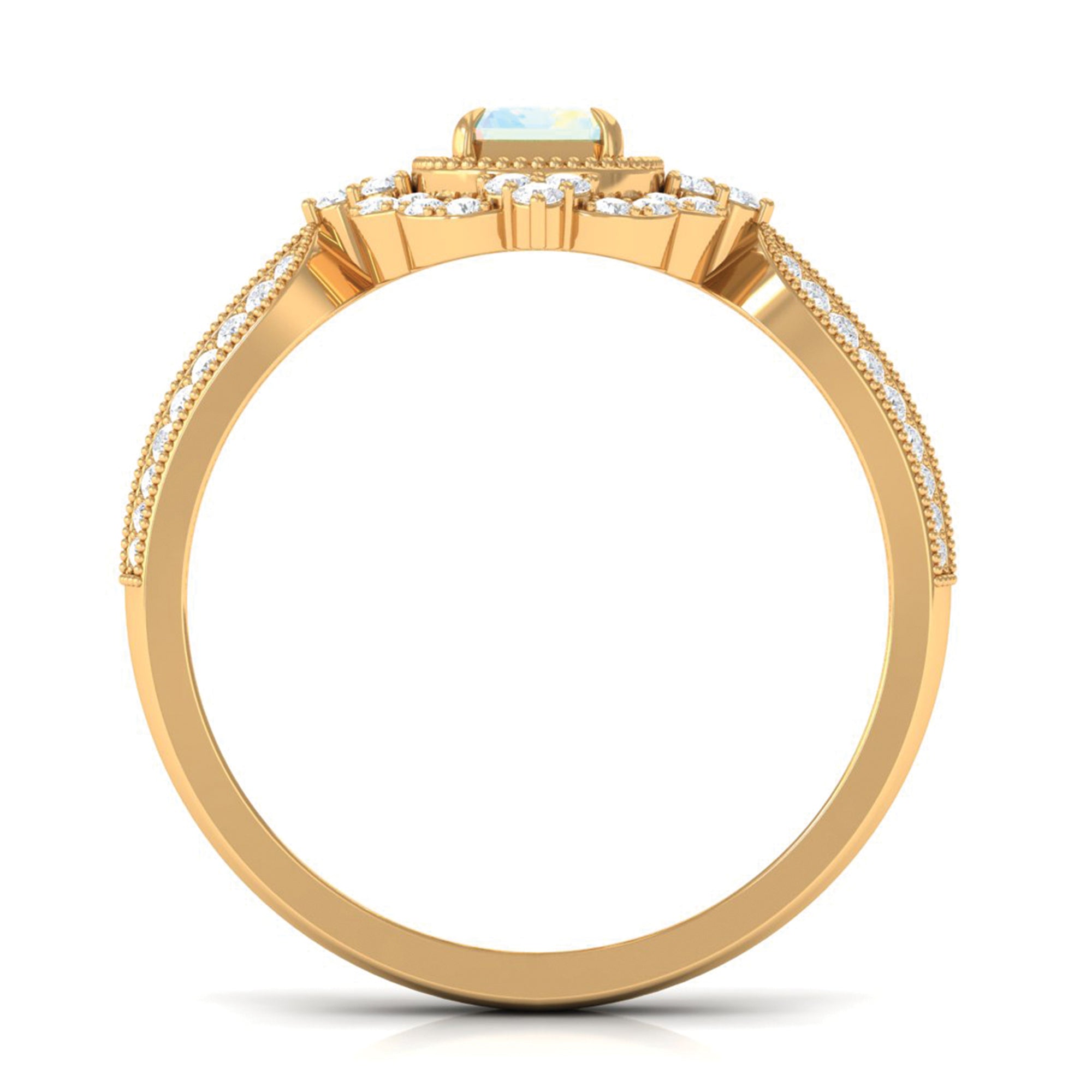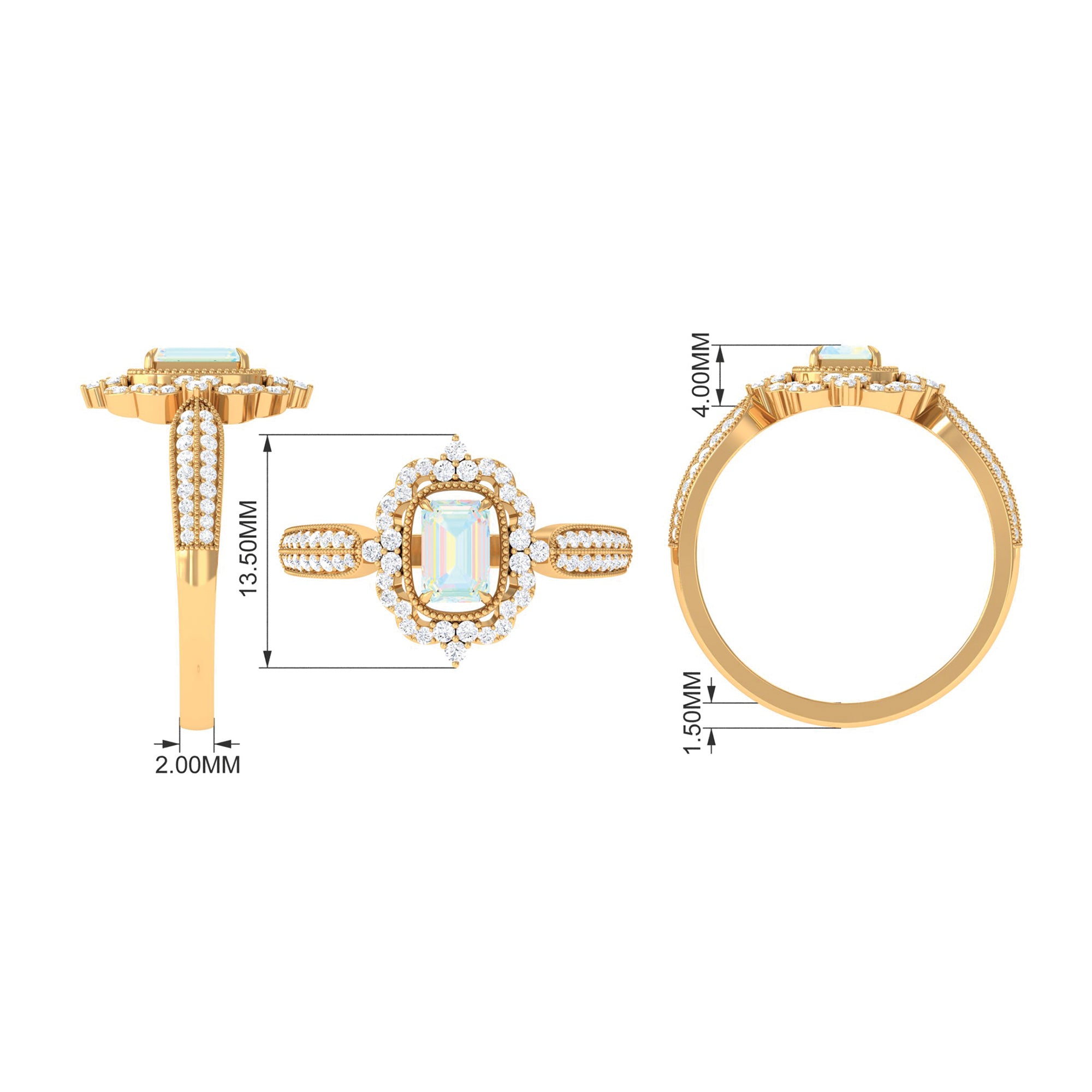 Real 6X8mm Emerald Cut Opalescent Antique Looking Engagement Ring with Diamond Halo