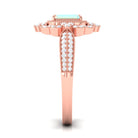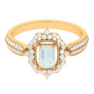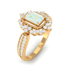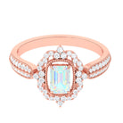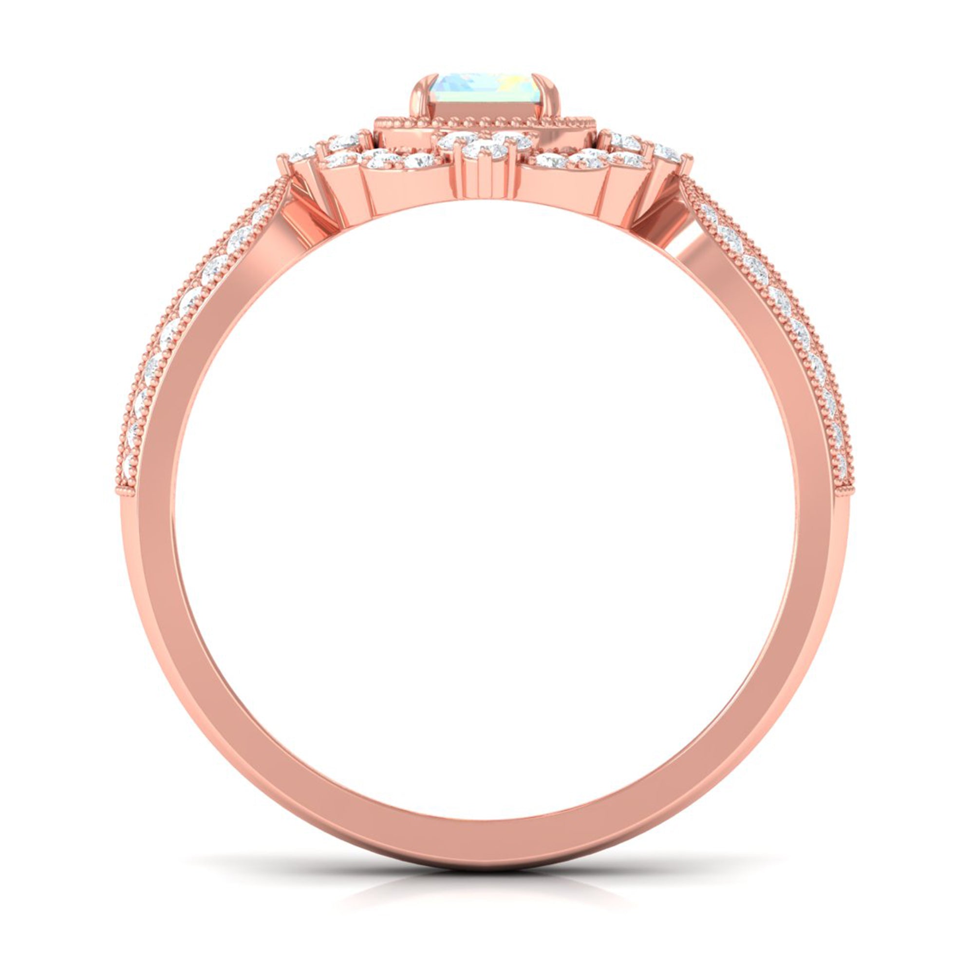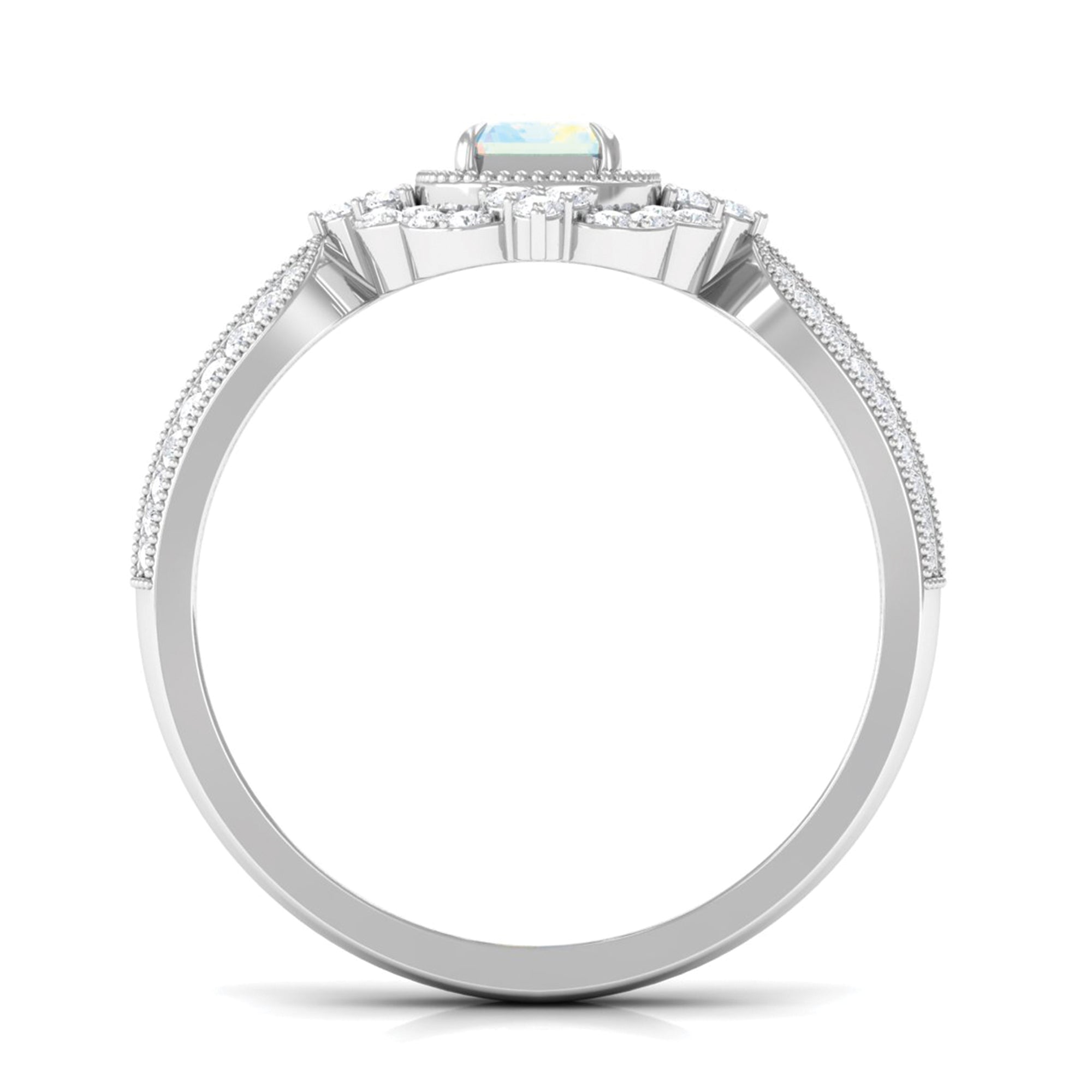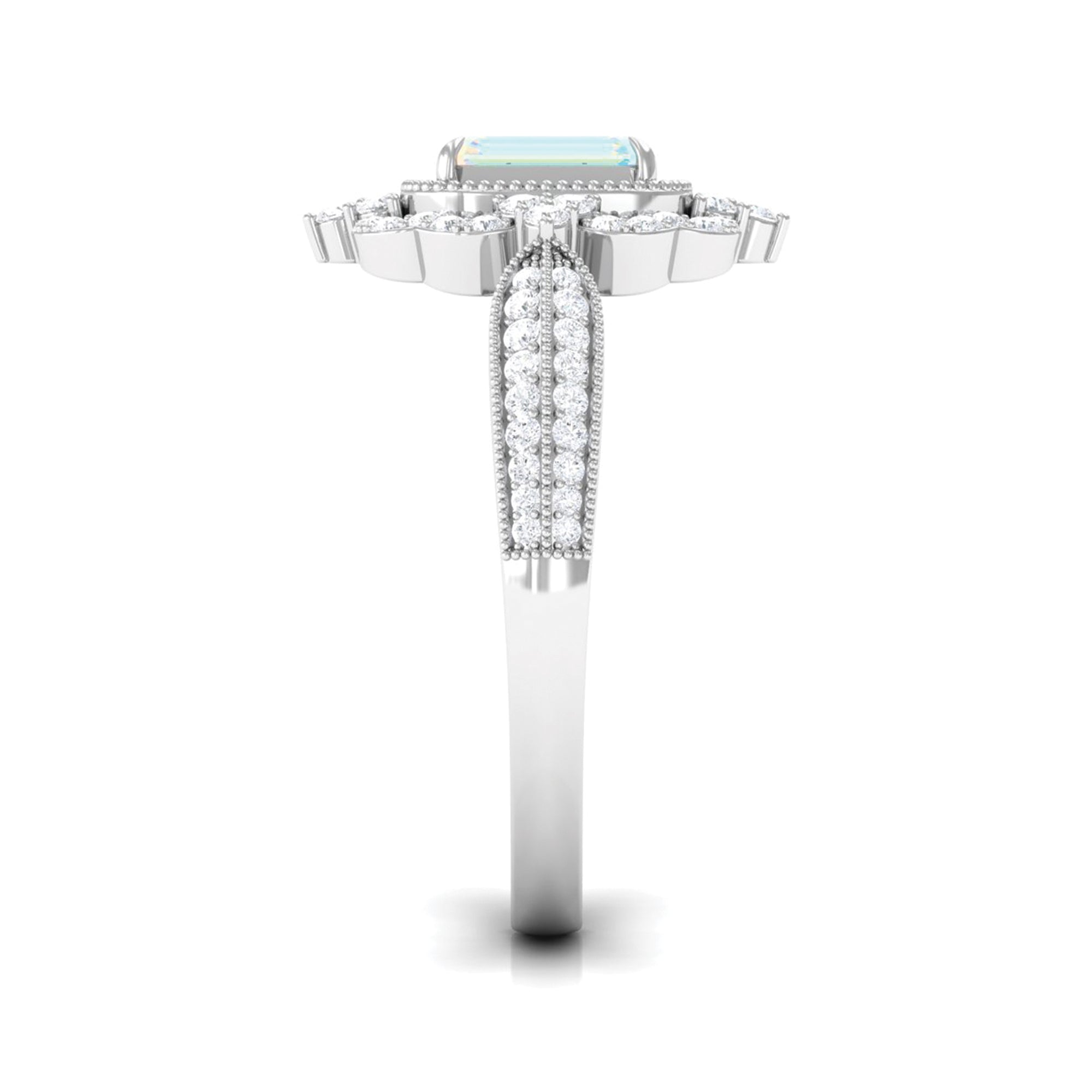 Real 6X8mm Emerald Cut Opalescent Antique Looking Engagement Ring with Diamond Halo