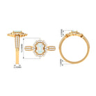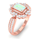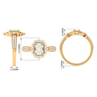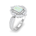 This Vintage Inspired Engagement Ring is a stunning blend of vintage charm and modern elegance, designed to celebrate your love most unforgettably. The 6X8 mm Emerald Cut Ethiopian Opal set in Claw Setting takes center stage, reflecting the depth and beauty of your connection. Framing this mesmerizing AAA Quality Opal is a Halo of sparkling HI-SI Diamond stones, perfectly placed to amplify the captivating glow of opal. The delicate Diamond Side Stones and intricate Beaded Detailing add an extra layer of sophistication, creating a timeless piece that feels both romantic and regal. This Emerald Cut Engagement Ring feels like a treasure from another era, yet the brilliance of the opal and diamond stones makes it as relevant and radiant as your love. Whether you are proposing or marking a milestone, this Vintage Opal Engagement Ring design is the perfect symbol of a love that is both enduring and eternal. Presented in a signature jewelry box and available in various sizes, this Opal and Diamond Engagement Ring is a gift that will be cherished for a lifetime, shining as brightly as the memories you will create together.