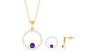 Real Amethyst and Moissanite Eternity Pendant Earrings Set