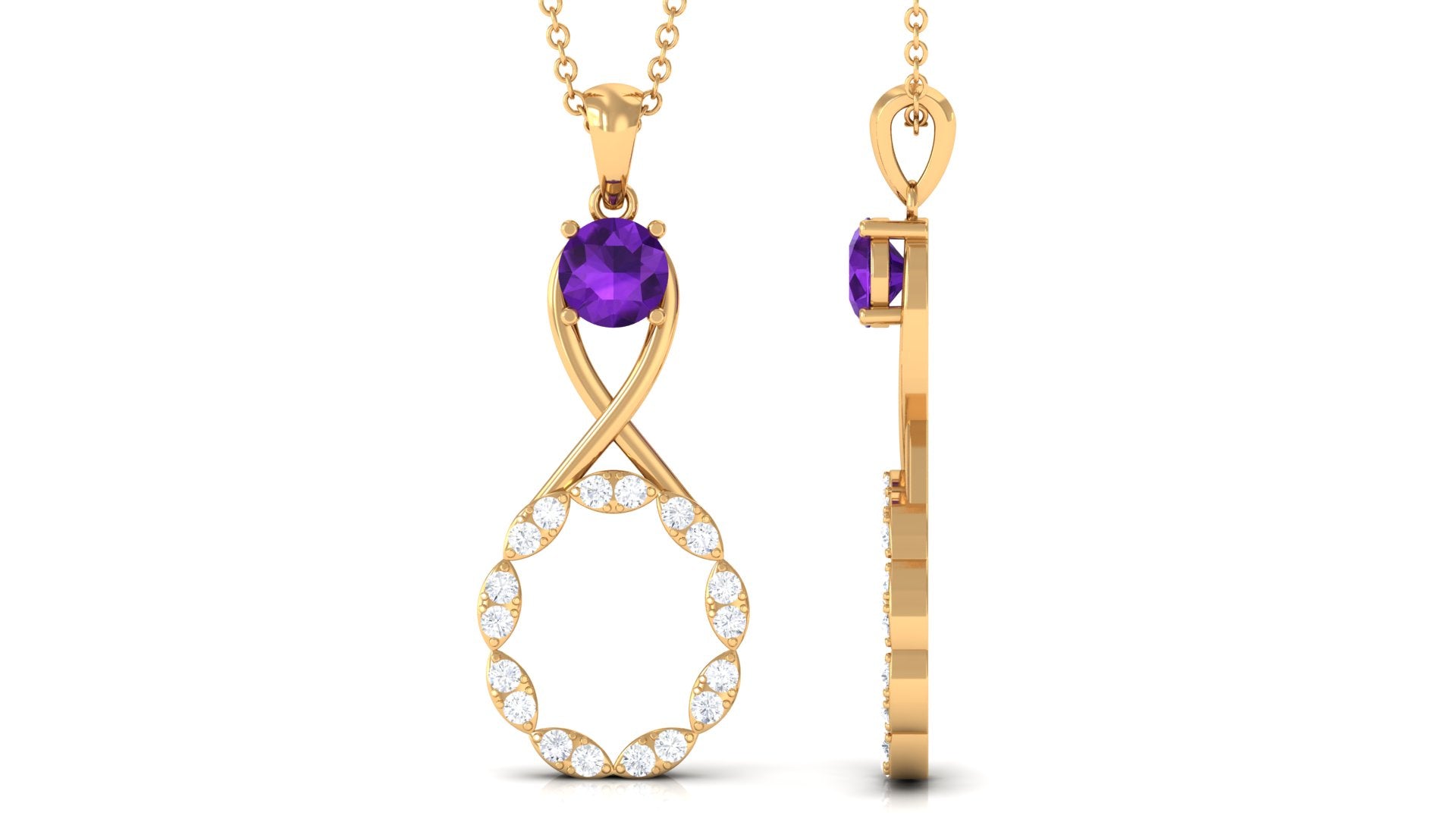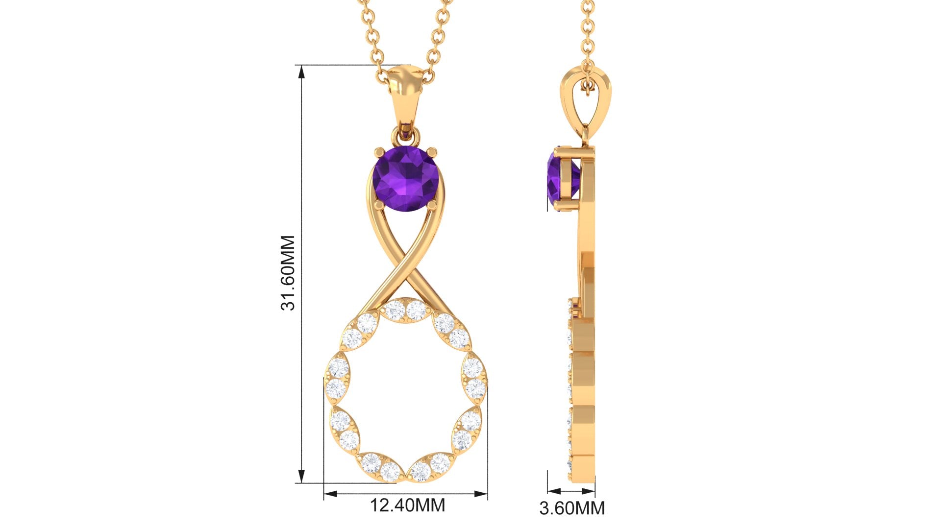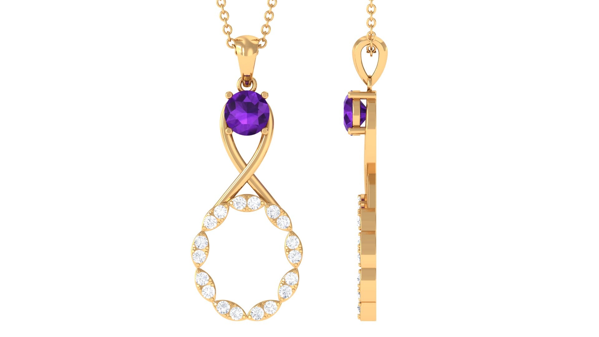 Real Amethyst Infinity Drop Pendant Necklace with Diamond