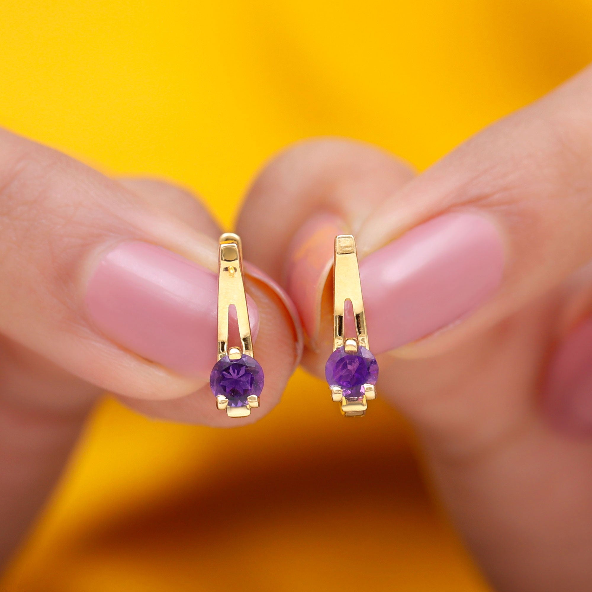Our Amethyst Lever Back Earrings will be a lovely addition to your evening looks. A pair designed to be worn for a lifetime, adorned with scintillating Round Shape Amethyst secured by 3 Prong Setting. The Lever Back Closure will keep your Amethyst Earrings secured in their place. Get these mesmerizing Solitaire Earrings as an anniversary gift for her and get a precious smile on her face.