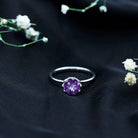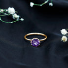 Enhance your appearance with the exquisite Solitaire Ring. Its elegant design features a mesmerizing Round Cut Amethyst, delicately set in a Lotus Basket Setting. This enchanting ring is the perfect accessory to elevate your style, making it an exceptional choice for any special occasion.