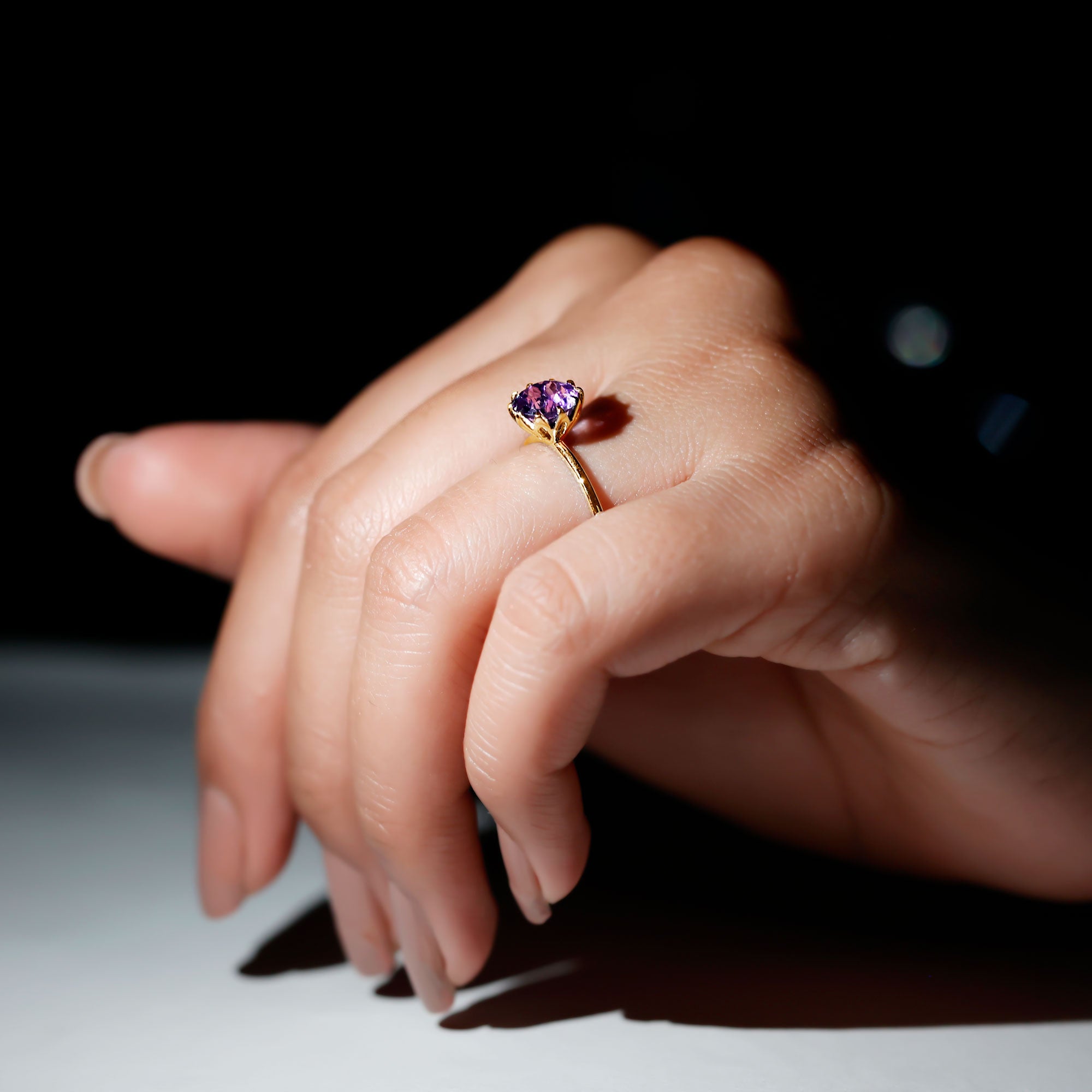 Real Amethyst Solitaire Ring in Lotus Basket Setting