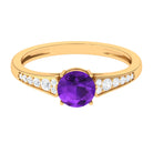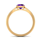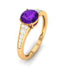 Real Amethyst Solitaire Ring with Diamond Side Stones