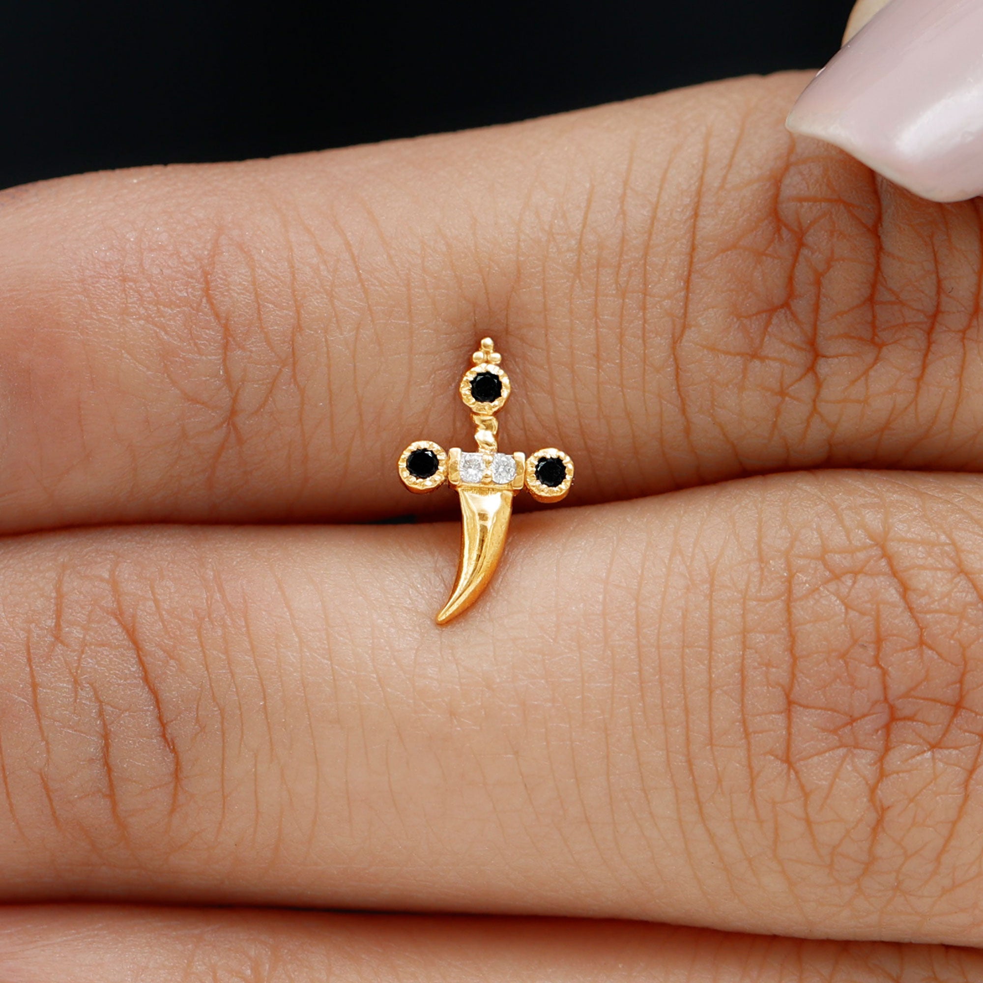Make a bold fashion statement with this striking Dagger Earring. With its unique design and sparkling Round Cut Black and White Diamonds, this Helix Earring is a perfect addition to your everyday and party wear. Wear it on your Helix, Rook, Conch, Cartilage, or Upper Lobe Piercing to stand out and emphasize your unique style. Choose between the Ball Screw Back or Flat Back closure to ensure that this Cartilage Earring stays securely in place. It makes a thoughtful and distinctive birthday gift for your loved ones.