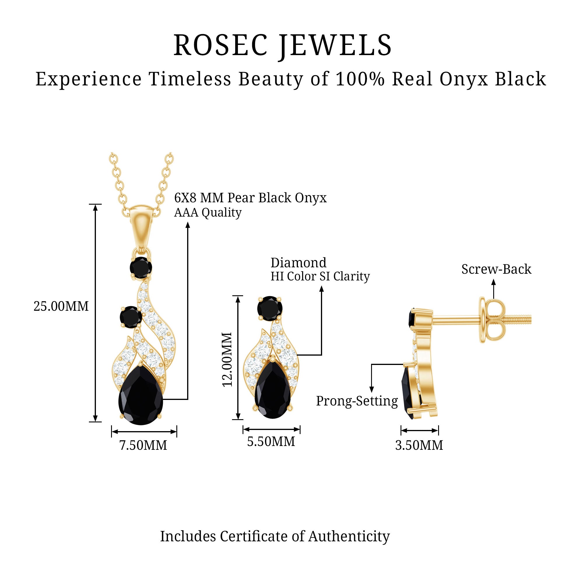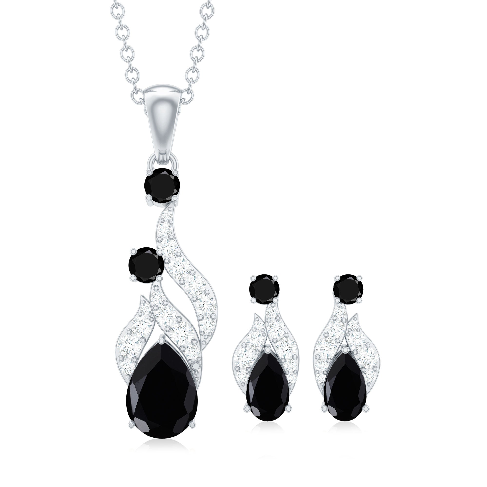 Get this Bridal Jewelry Set for your beloved one. Showcasing Pear and Round Shape Black Onyx secured in Prong Setting while dainty Round Shape Diamonds studded in Pave Setting. Flaunt this Black Onyx Jewelry Set with your special attire to stand out from the crowd and make everyone a fan of your style.