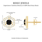 Timeless yet trendy, these Black Onyx Earrings are the perfect statement pieces for anyone who loves sleek, modern style with a hint of sparkle. The 4 mm Round Shape Black Onyx is set in Claw Setting in a unique hexagonal frame, creating a geometric shape that adds sophistication to any look. The Frame is adorned with dainty Diamond stones that bring a touch of elegance and shine, catching the light with every turn. The combination of the deep AAA Quality Black Onyx and the sparkling HI-SI Diamond stones creates a striking contrast, making these Geometric Earrings the perfect accessory for both day and night. The secure Screw Back Closure ensures that they stay comfortably in place, so you can wear them confidently. Whether you are dressing up for a night out or adding a refined touch to your everyday wardrobe, these Black Onyx Diamond Earrings are versatile enough to complement any outfit. Presented in a chic jewelry box, these Black and White Earrings are ready to gift, whether for a birthday, anniversary or just because someone deserves something special. Effortlessly stylish, these Black Onyx Stud Earrings are a must-have addition to any jewelry collection.