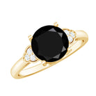 Real Black Onyx Solitaire Engagement Ring with Diamond Trio
