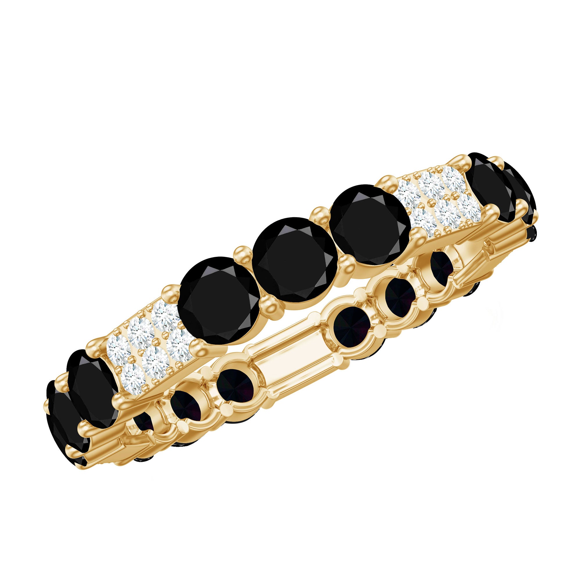 Elevate your style with this round-cut Black Spinel and Diamond Full Eternity Ring. The black spinel gemstones are expertly set in prongs and surrounded by sparkling Diamond stones. This ring is made of solid gold and adds a touch of glamour to any outfit. Surprise your significant other with this beautiful Black Spinel Eternity Ring.