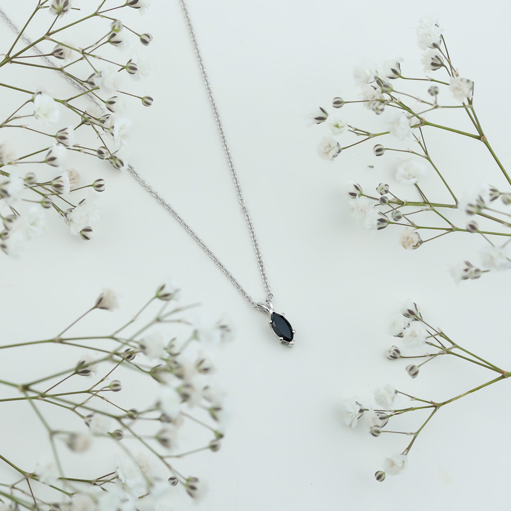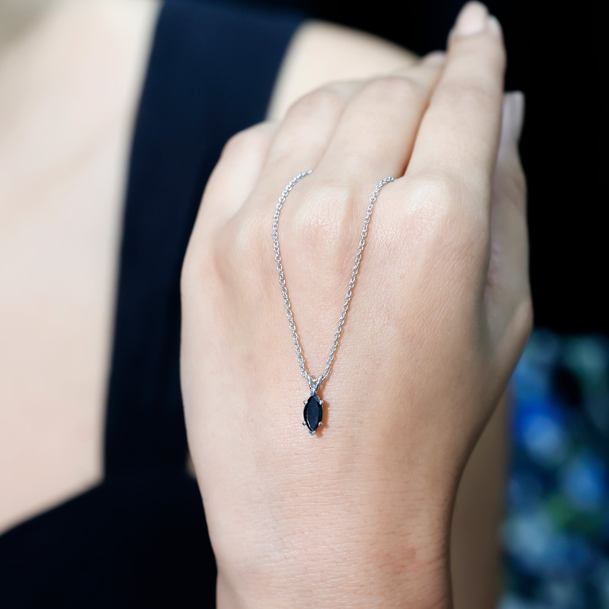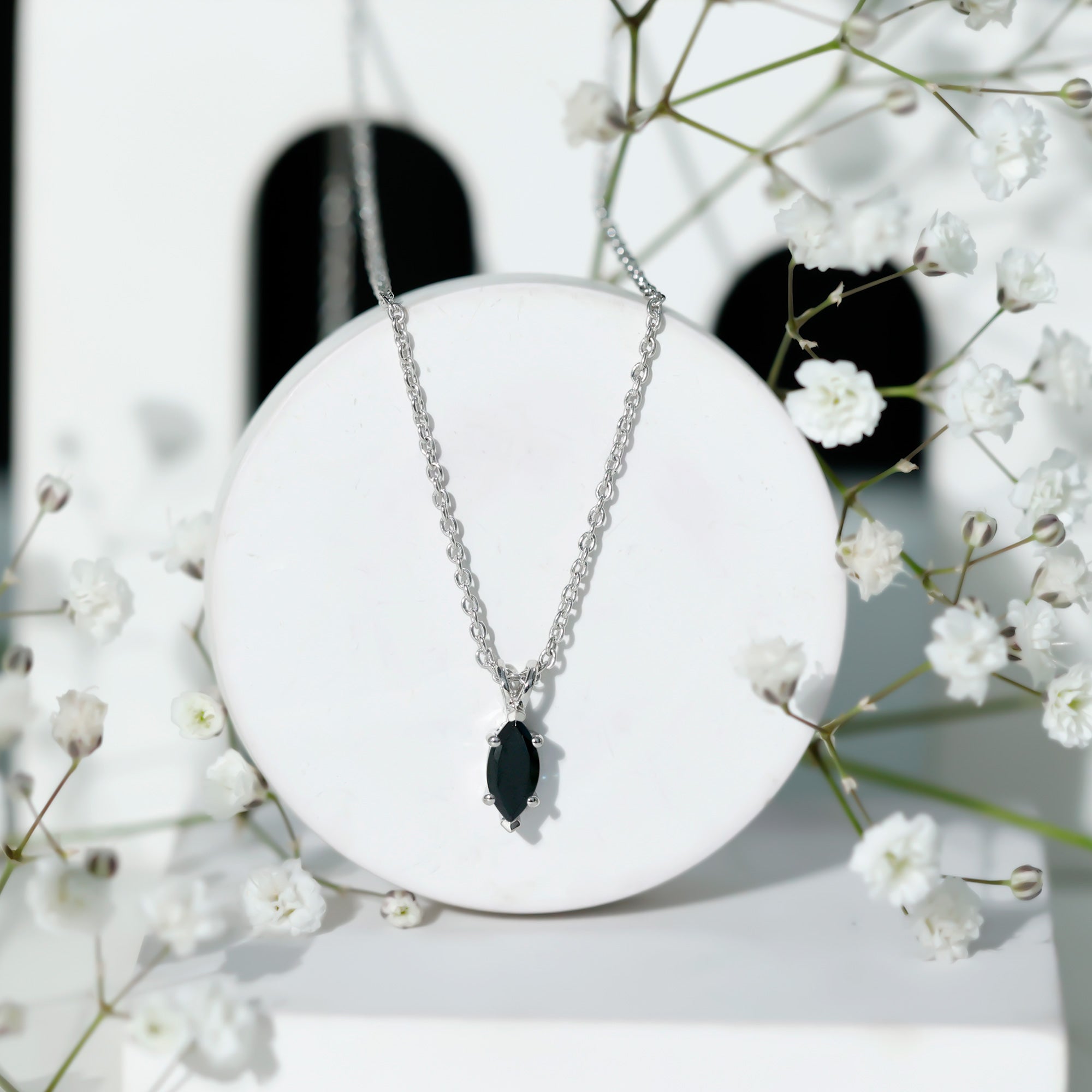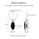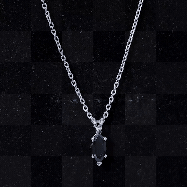 Real Black Spinel Marquise Necklace with Silver Chain