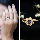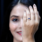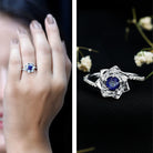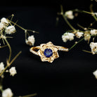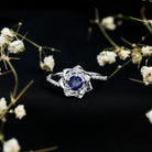 Real Blue Sapphire and Diamond Flower Ring with Bypass Shank