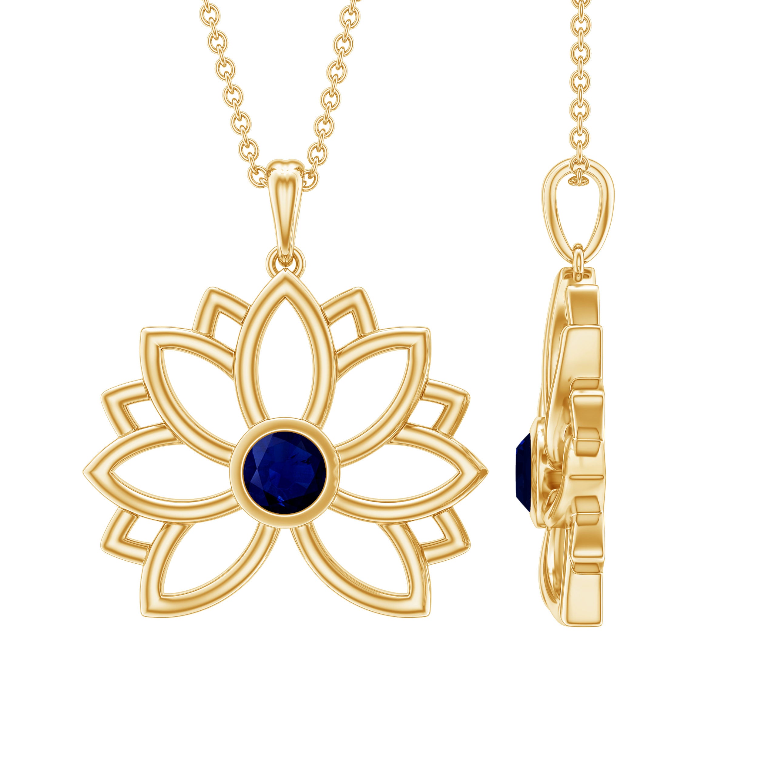 A lotus in full bloom carries a quiet strength, and this Blue Sapphire Necklace captures that beauty in the most graceful way. Inspired by the flower that rises from still waters, the Lotus Pendant Necklace symbolizes purity, renewal, and the journey toward inner peace. Curated with a round blue sapphire, securely set in bezel setting. Each petal of the lotus is shaped with gentle curves, creating a harmonious frame around the sapphire and giving the Sapphire Flower Necklace a peaceful and uplifting presence. Known as a gemstone of wisdom and clarity, the sapphire complements the lotus perfectly, making this piece both meaningful and visually captivating. Crafted with AAA quality blue sapphire, the necklace is designed with durability, brilliance, and careful attention to detail. Suspended from a comfortable matching chain, the September Birthstone Necklace sits beautifully along the neckline, making it easy to wear every day or on special occasions.