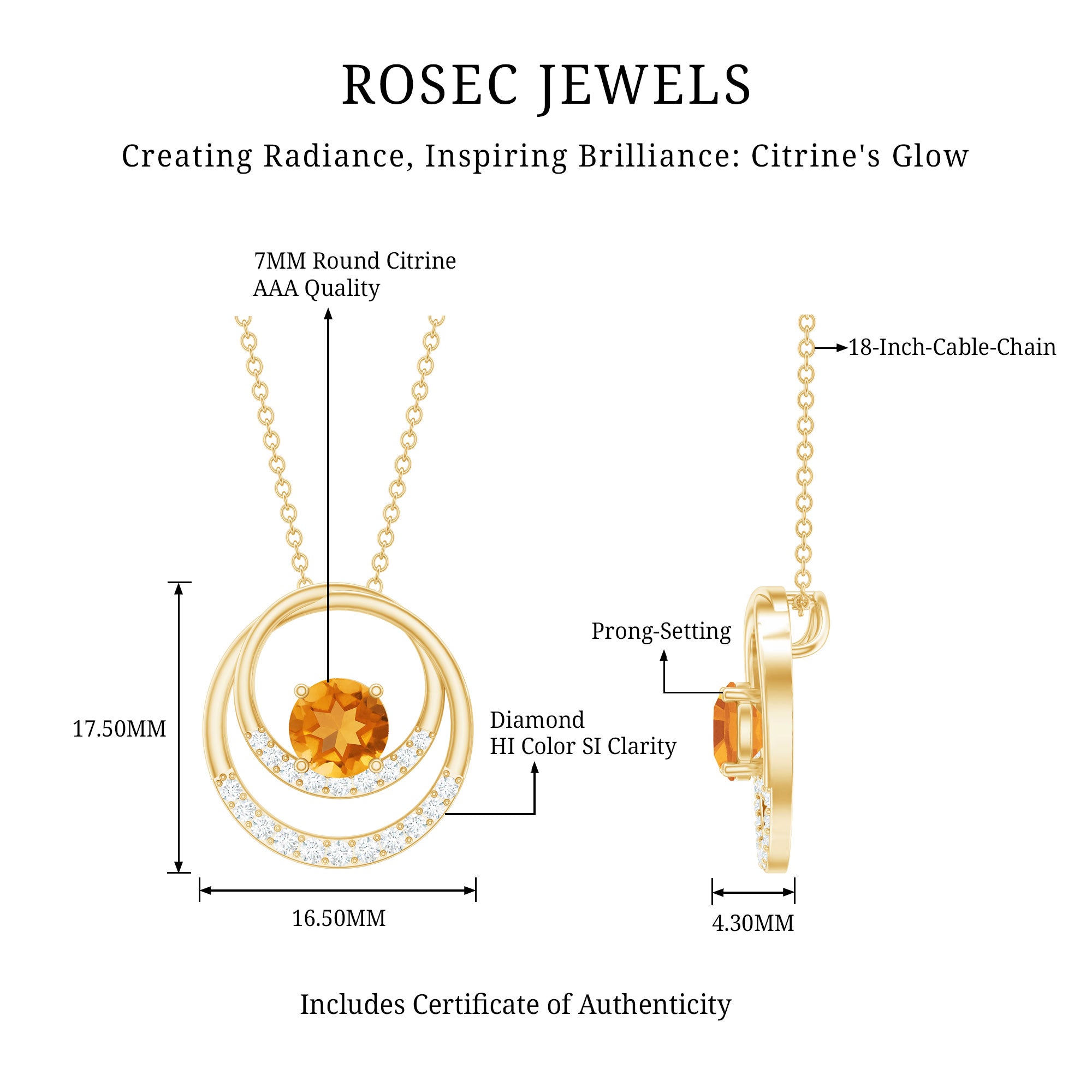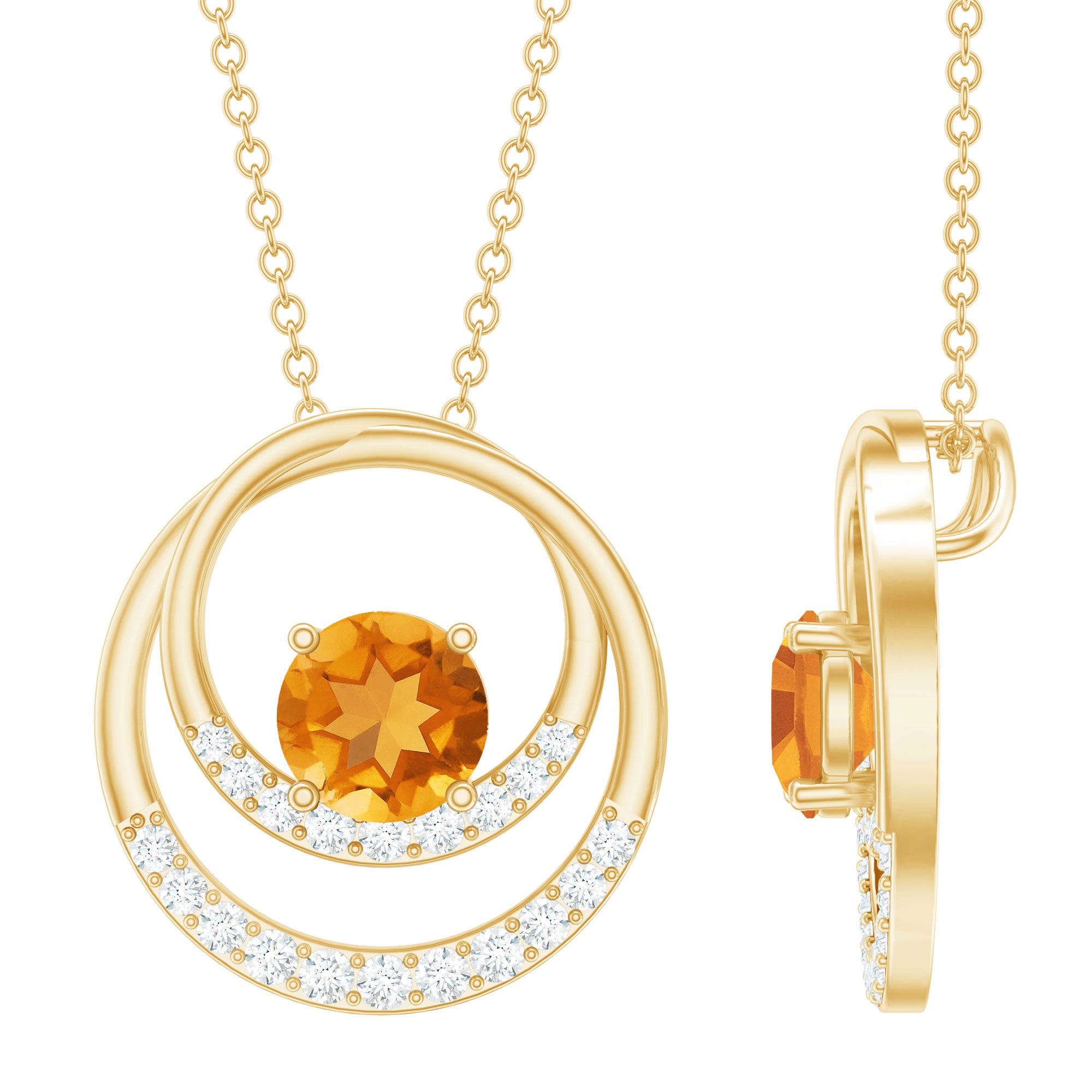 If you want to fortify your relationship and make it enduring, consider our Citrine Pendant Necklace as the ideal option. The necklace boasts a 7 MM Round Shape Citrine securely held in a Prong Setting and encircled by dazzling Round Diamond on an open pendant. The necklace adds a magnificent touch to her neckline with its striking yellow hue. Whether shes dressing up or down, this Citrine Pendant Necklace is a great way to incorporate a burst of color into her outfit.