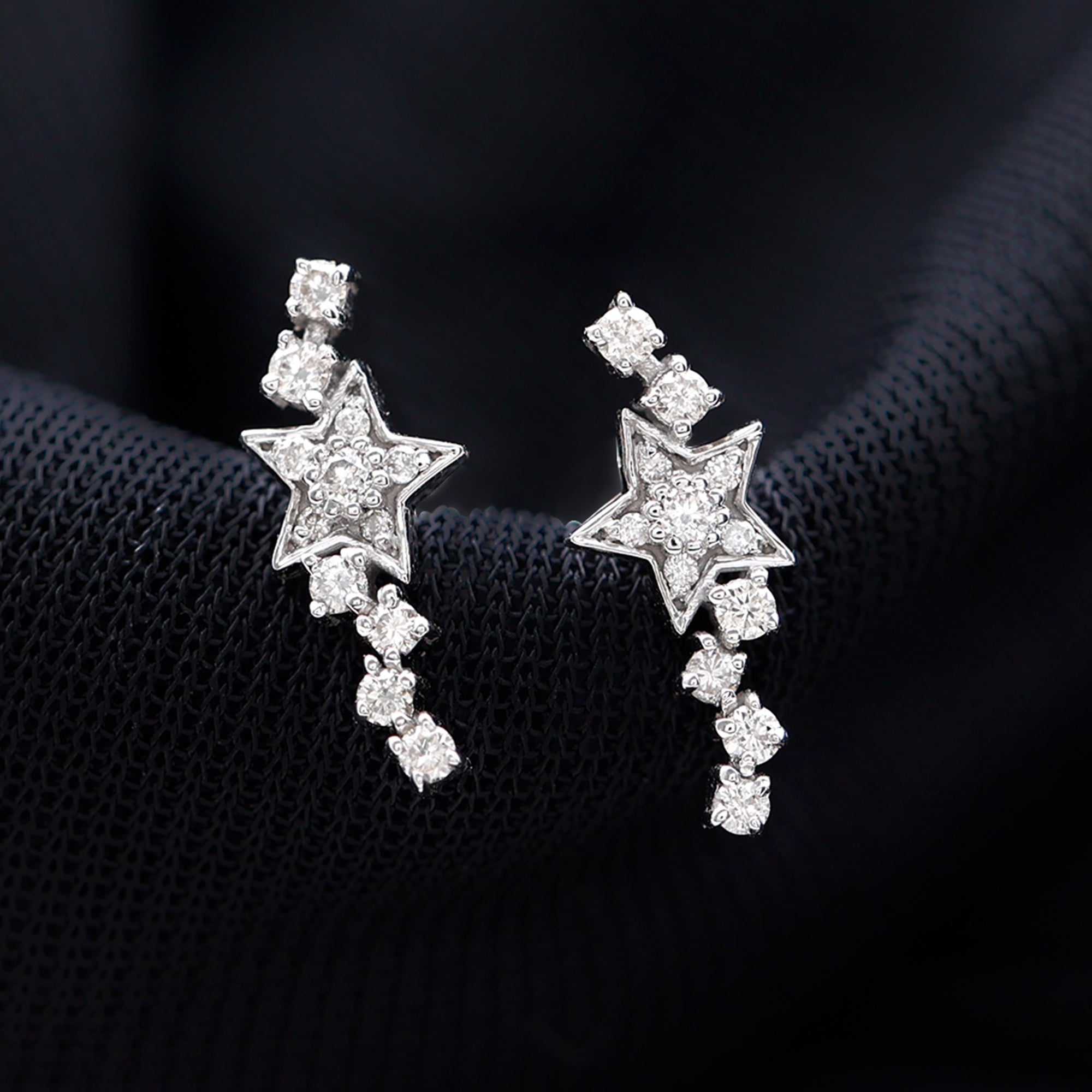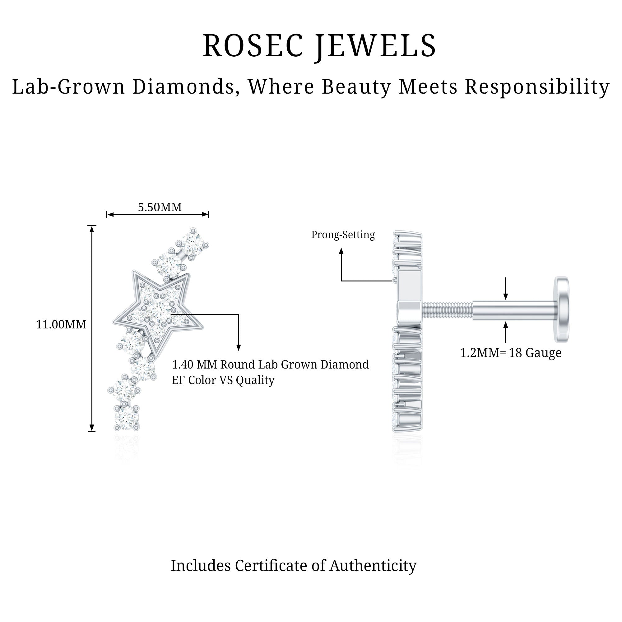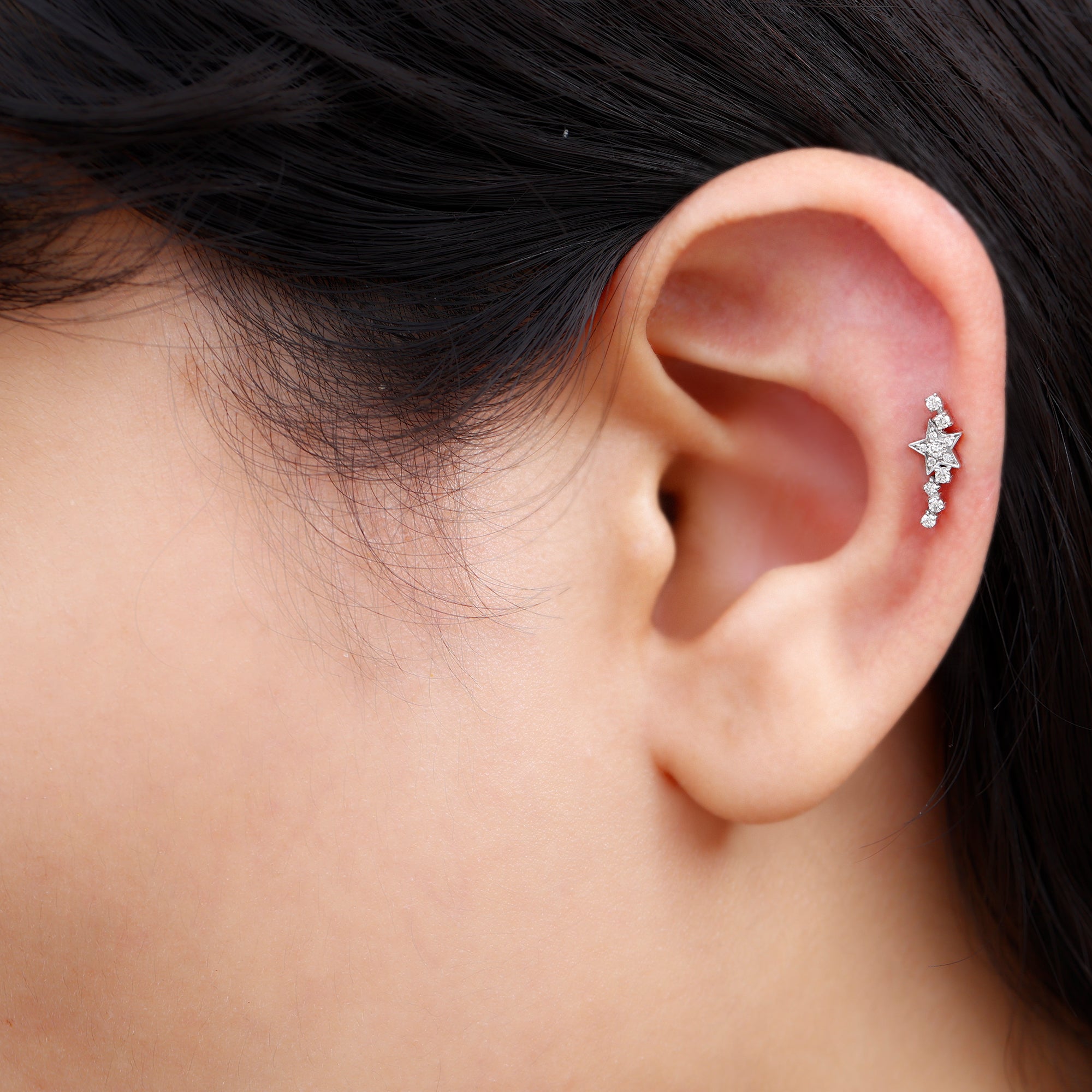 Certified Diamond Star Crawler Earring for Helix Piercing
