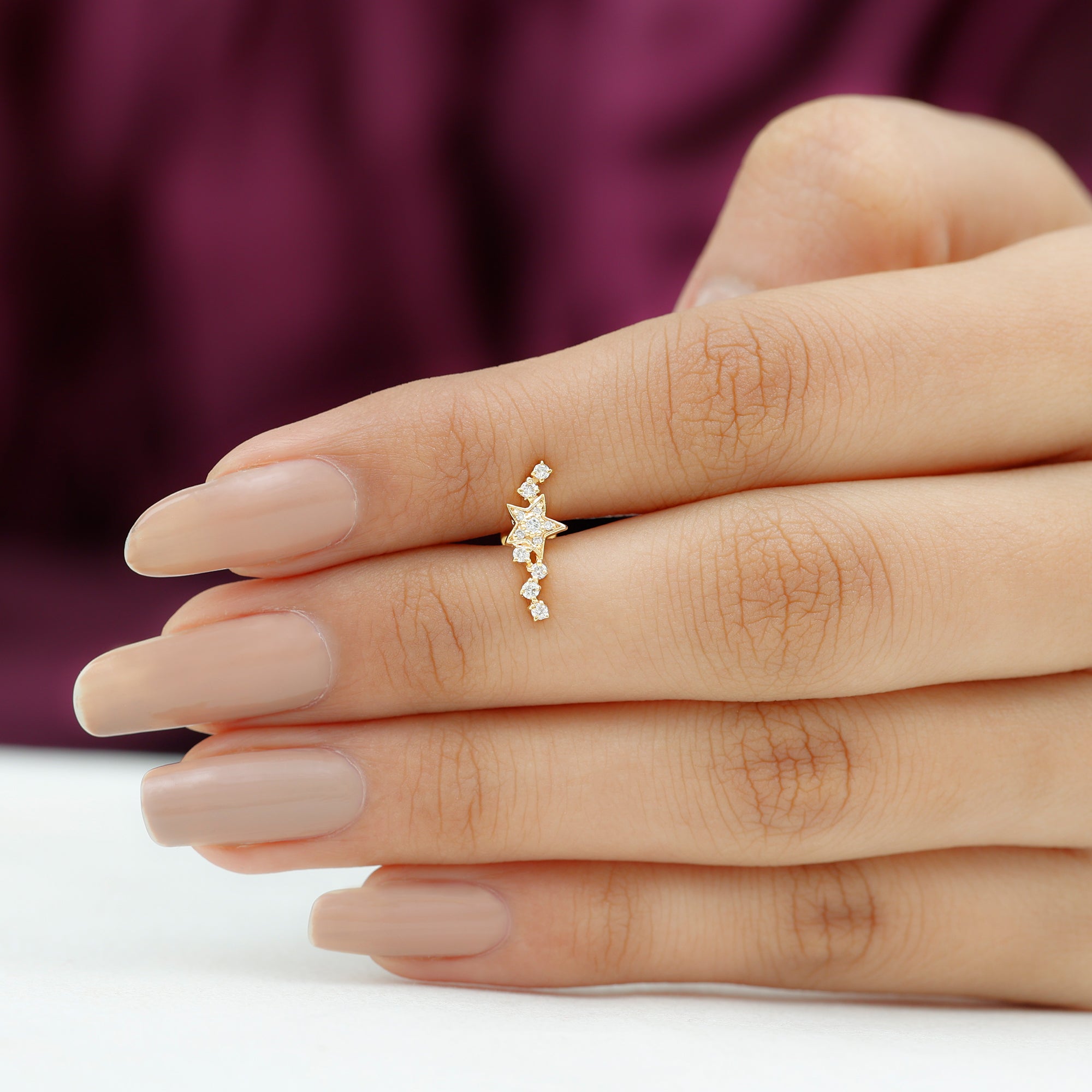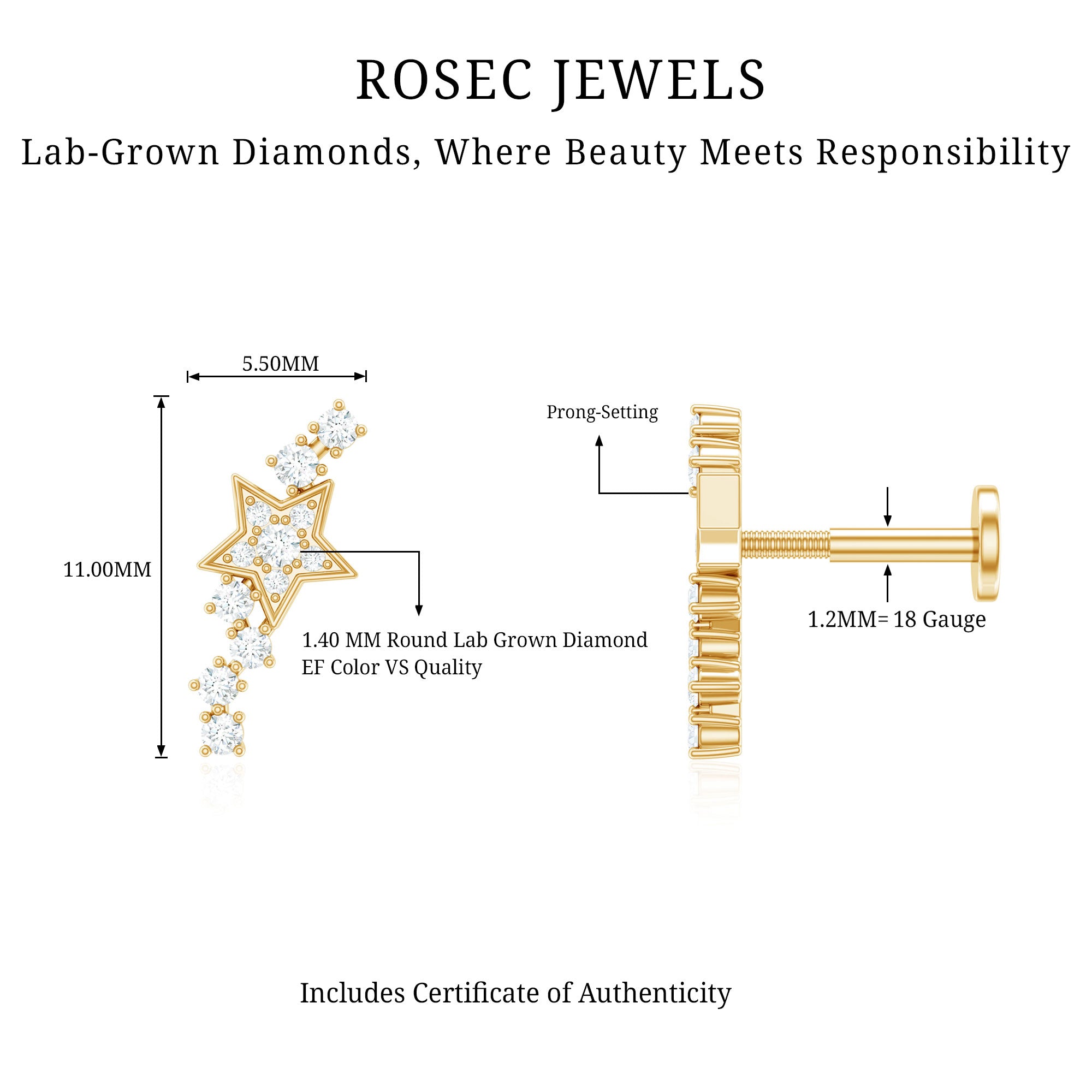 Enhance your fashion and embrace the celestial charm with this enchanting Diamond Star Earring. The Crawler Earring showcases tiny, shimmering round diamonds arranged in a star design, embodying the wonder of the night sky. This exquisite celestial accessory is perfect for Helix Piercing, but it can also embellish other ear places, such as Cartilage or Upper Lobe. Meticulously crafted for comfort and safety for all-day wear, and featuring a flat back, this Star Stud Earring makes a wonderful gift to commemorate special occasions and milestones. The lovely design of this Helix Earring holds significant symbolism while embodying the essence of light. The star motif carries profound meaning and shines like a star. As a symbol of positivity and happiness, it also acts as a daily reminder of hope, adding a hint of brilliance to your outfit. Striking and elegant, this Diamond Ear Piercing Jewelry pays homage to beauty, showcasing captivating sophistication by infusing a touch of whimsy and grace into your look, reflecting light with every movement.