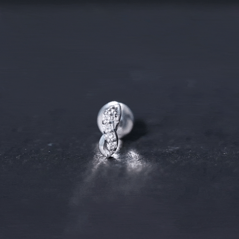 The Diamond Infinity Tragus Earring showcases a Round Cut Diamonds in Pave Setting studded on a Gold Infinity Design. The Diamond Earring is crafted with Hallmarked Gold, can be worn on your Helix, Cartilage, Tragus, Conch, or Upper Lobe Piercing. Gift this Diamond Earring to your special one as a Birthday Gift or an Anniversary Gift.
