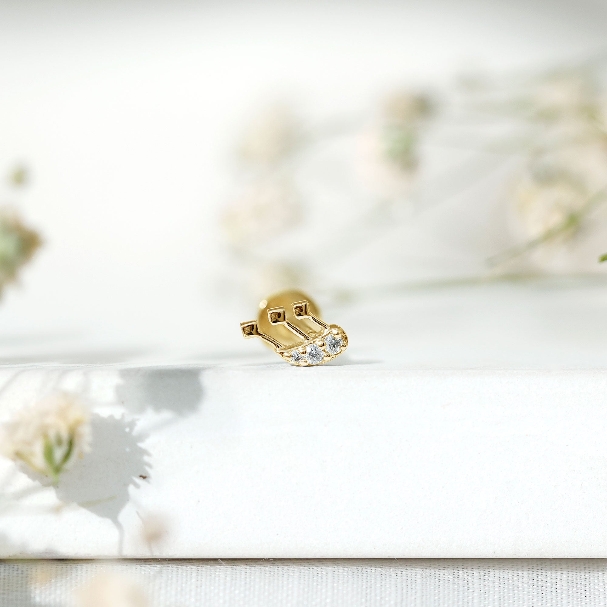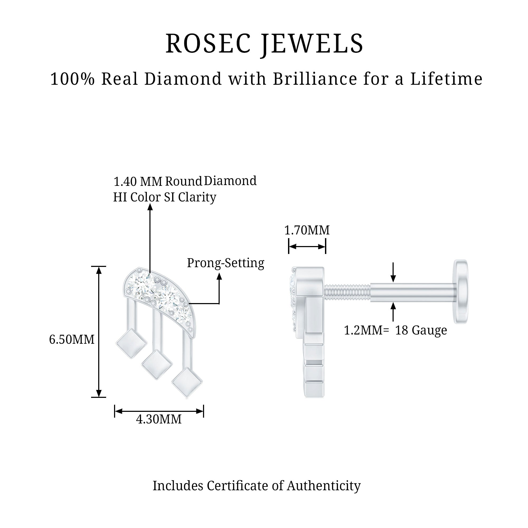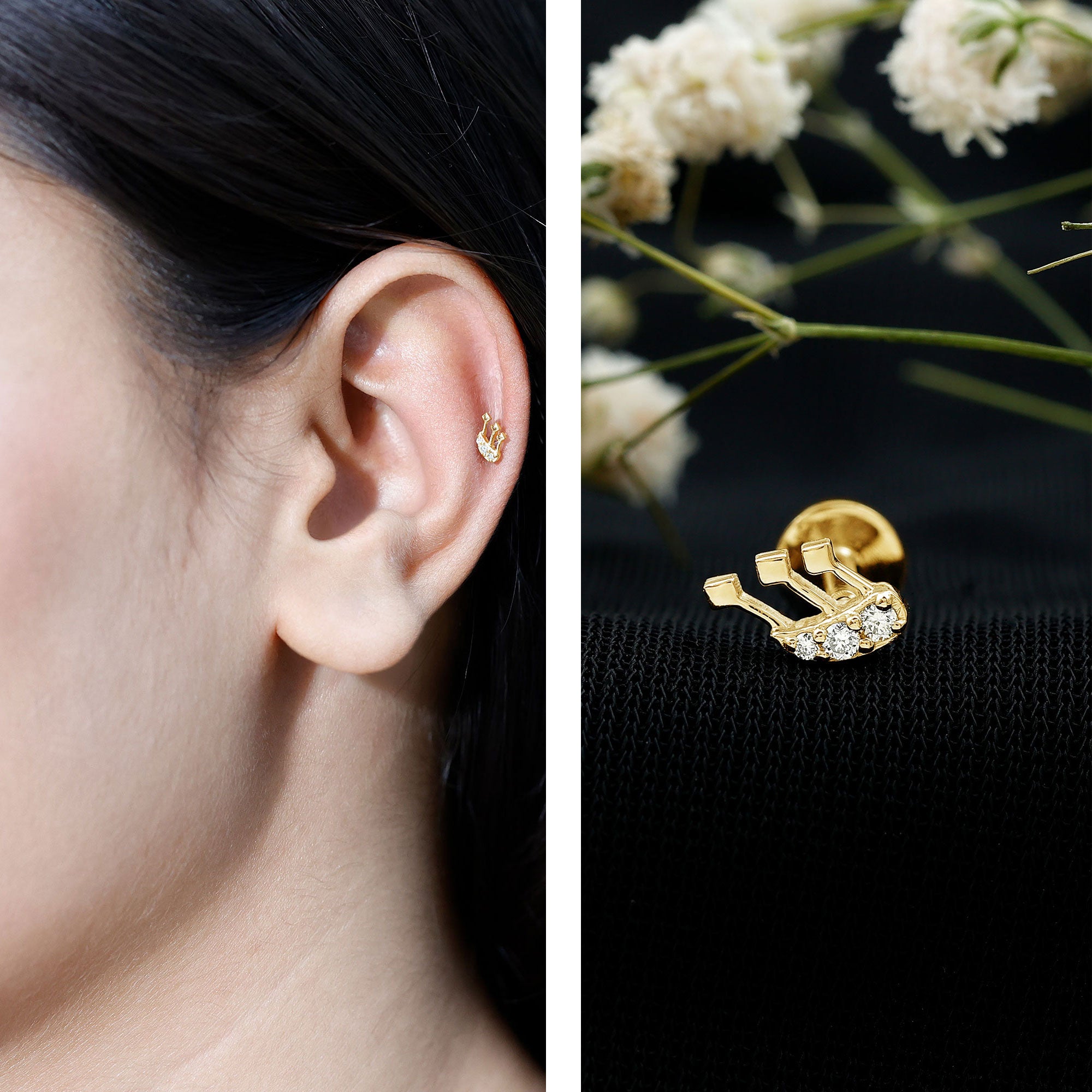 Enhance your style with the Diamond Music Note Earring, a beautiful Ear Piercing adorned with Round Cut Diamonds in Pave Setting. This versatile earring is perfect for your Cartilage, Helix, or Upper Lobe piercing and can be secured in place with a simple Flat Back Closure. This Diamond Helix Earring is the perfect accessory that will flawlessly complement both casual and party attire. This piece of Piercing Jewelry makes for a perfect gift for music lovers, adding a touch of elegance and sophistication to their jewelry collection.