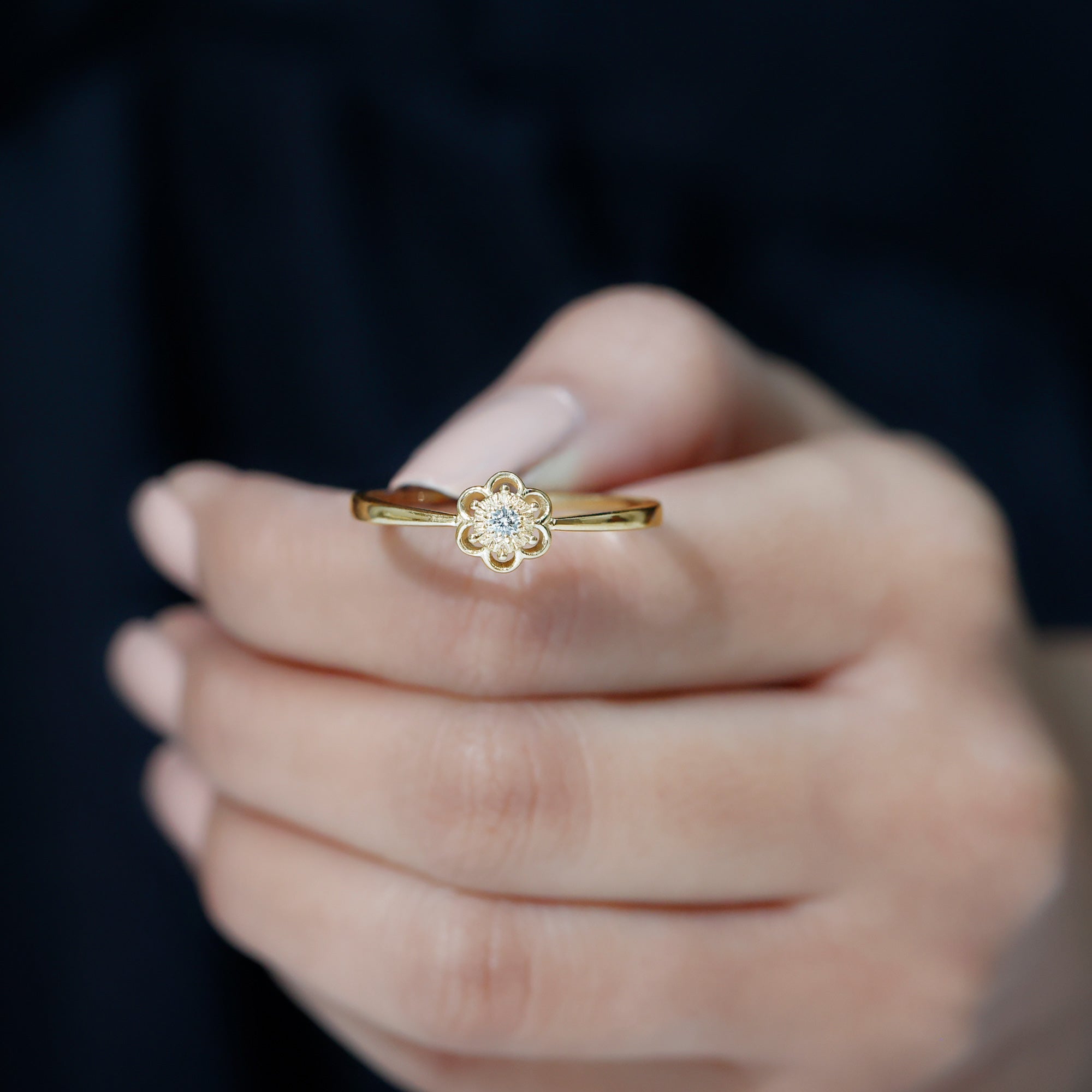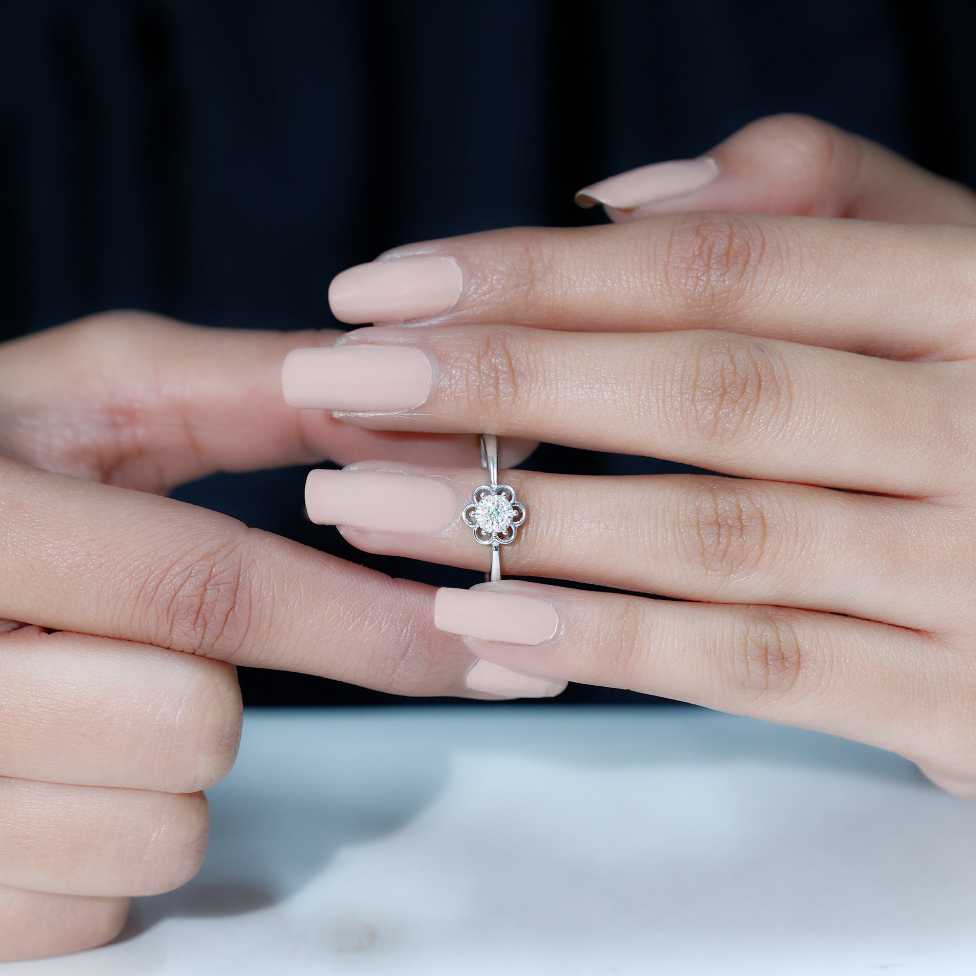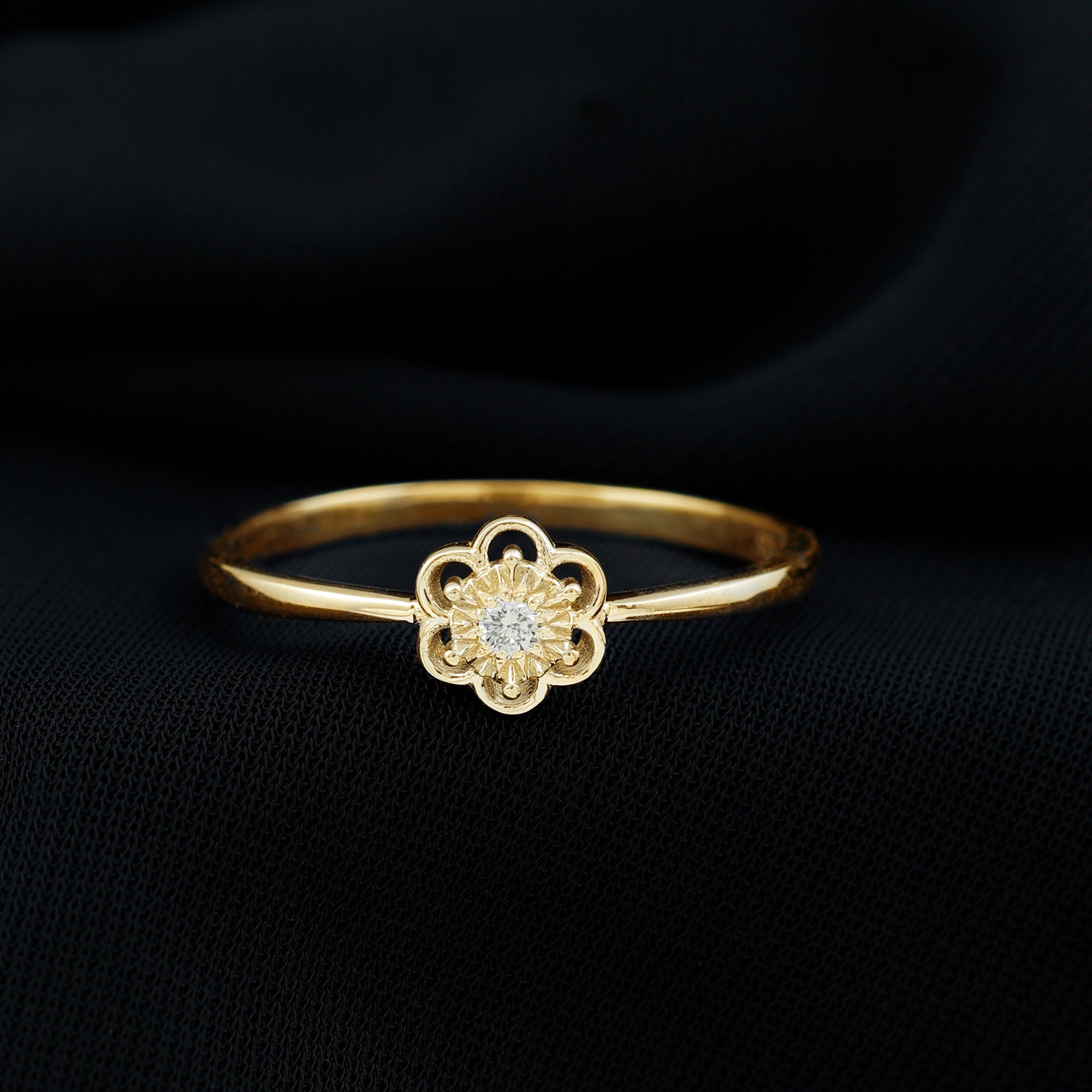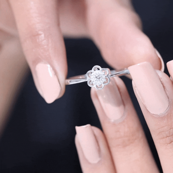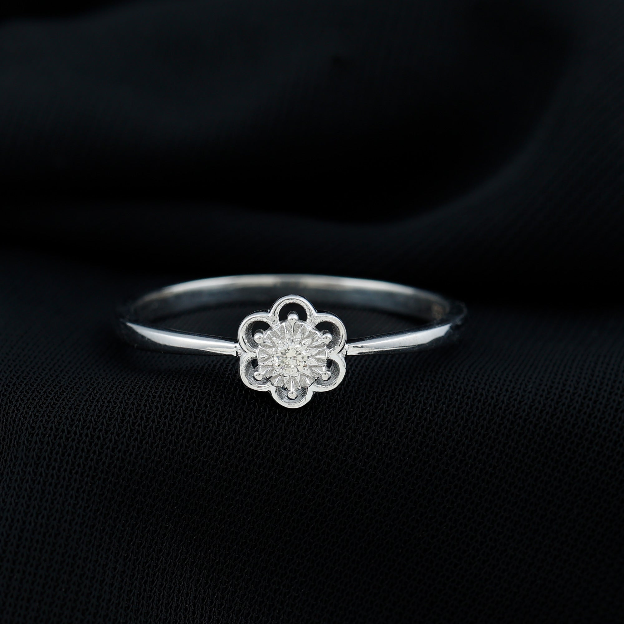 Real Diamond Solitaire Flower Ring with Miracle Plate