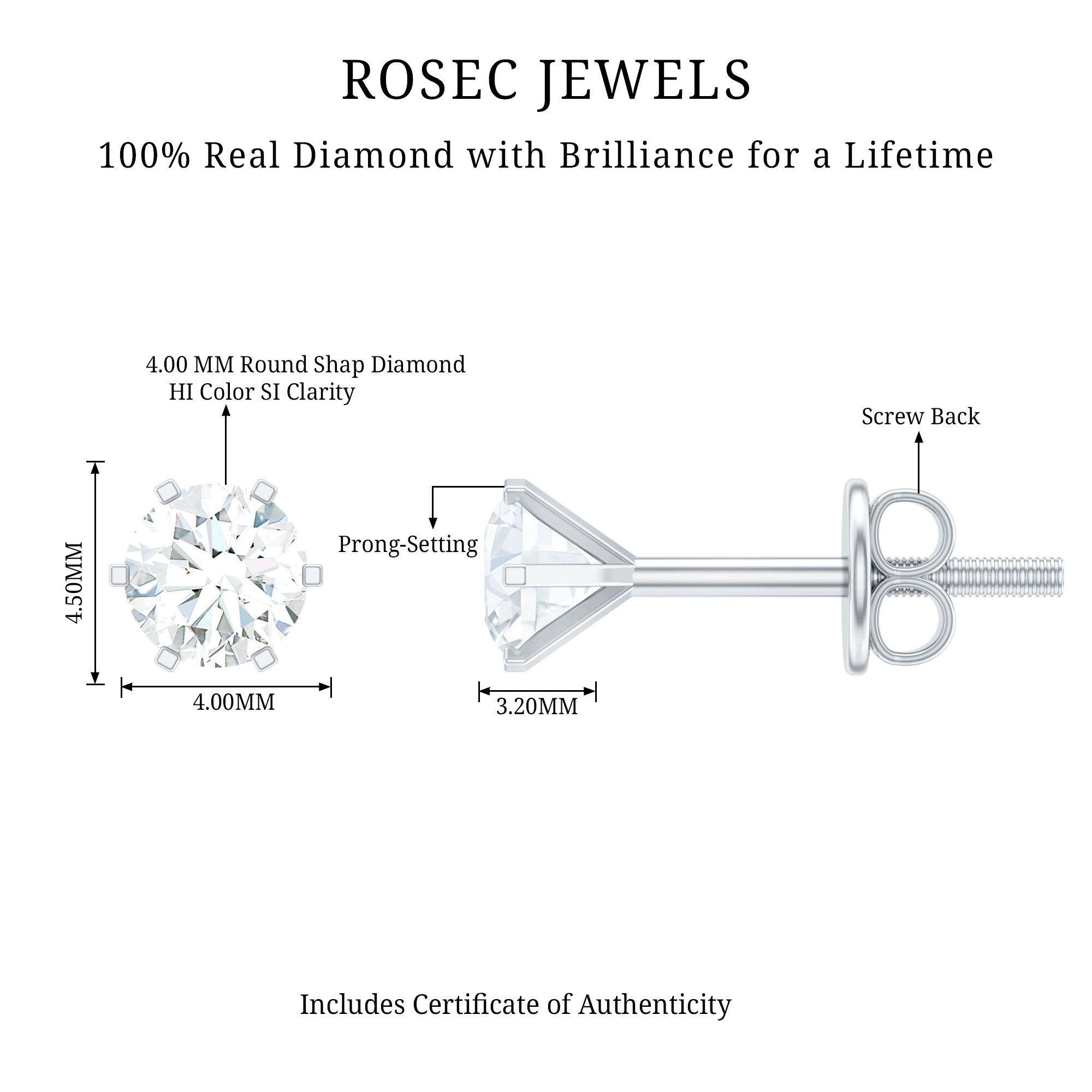 Presenting our stunning Solitaire Stud Earrings, expertly designed with a classic beauty. Featuring a 4 mm Round Shape Diamond carefully placed in 6 Prong Setting. Locked in place with a Screw Back Closure, these Stud Earrings provide both style and security. These April Birthstone Earrings are a versatile and elegant option, perfect for dressing up or adding a little glamour to your daily style, whether it be for a special event or everyday wear.