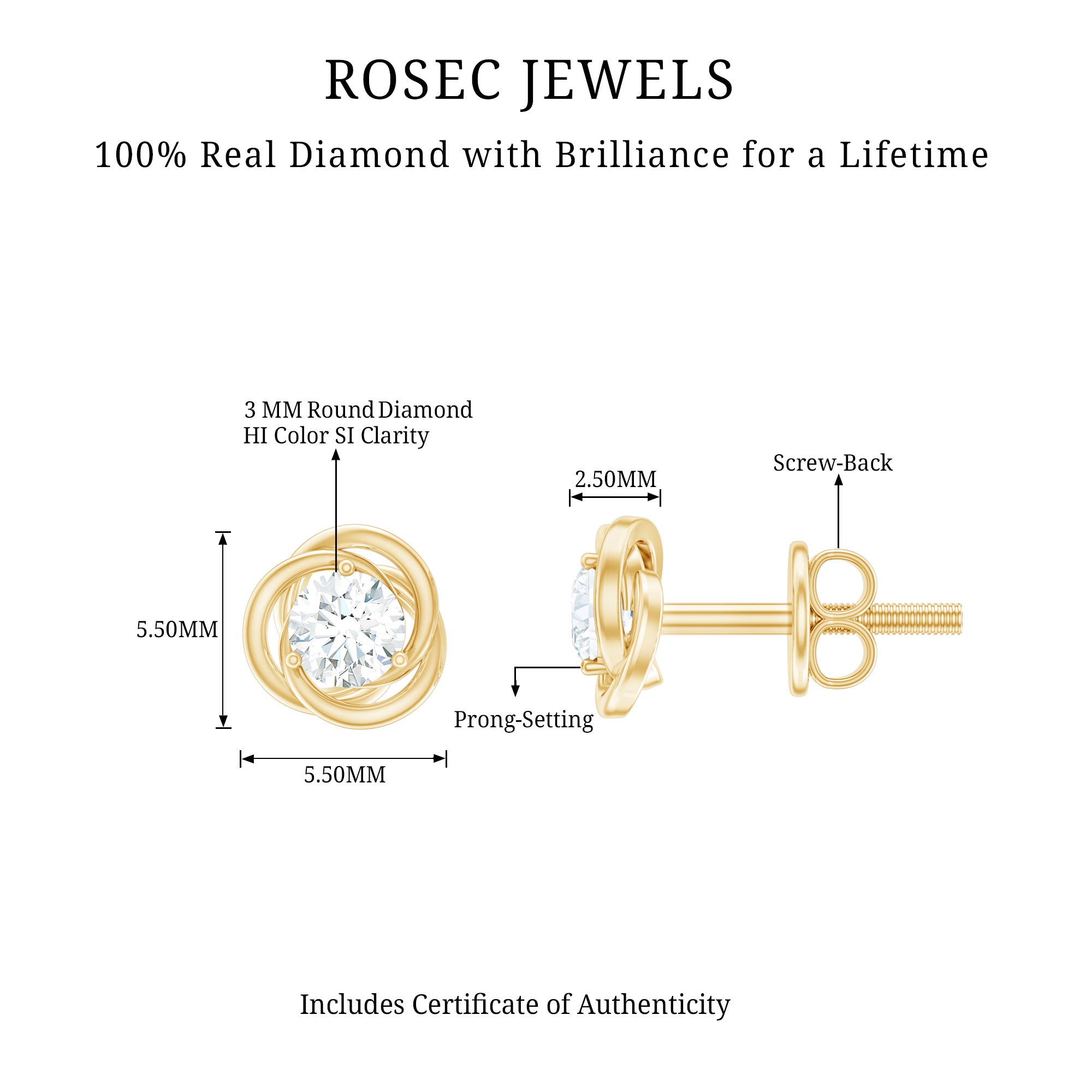 With the flawless combination of sophistication and style, these Diamond Stud Earrings create an enchanting sparkle that would elevate your ear game with the versatile and dazzling appearance. At the center of the swirl design sits a round diamond held securely in prong setting, letting the stone shine clearly from every angle. The curved pattern around the stone adds movement and charm, making the Solitaire Stud Earrings feel elegant. Designed with screw back closures, the Swirl Earrings stay safely in place throughout the day, giving you a comfortable fit you can trust. HI-SI quality diamonds add a bright sparkle that pairs well with the graceful swirl shape. The simple yet meaningful design makes the Real Diamond Earrings suitable for many ages and styles, letting them blend effortlessly with both everyday outfits and dressier looks. Wrapped neatly for gifting, the earrings become a thoughtful choice for birthdays, anniversaries, or meaningful moments shared with someone you love.