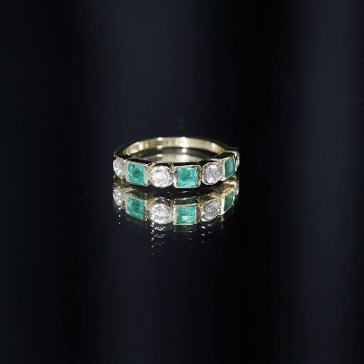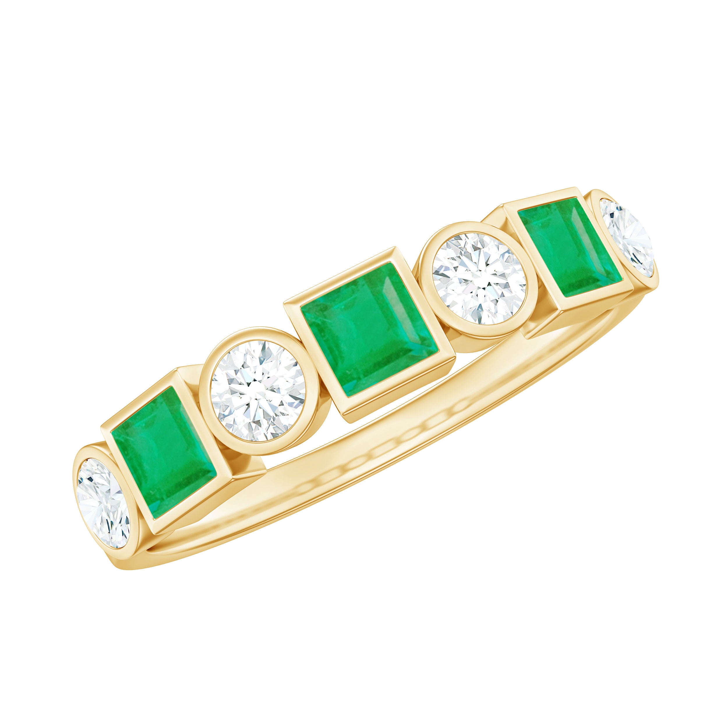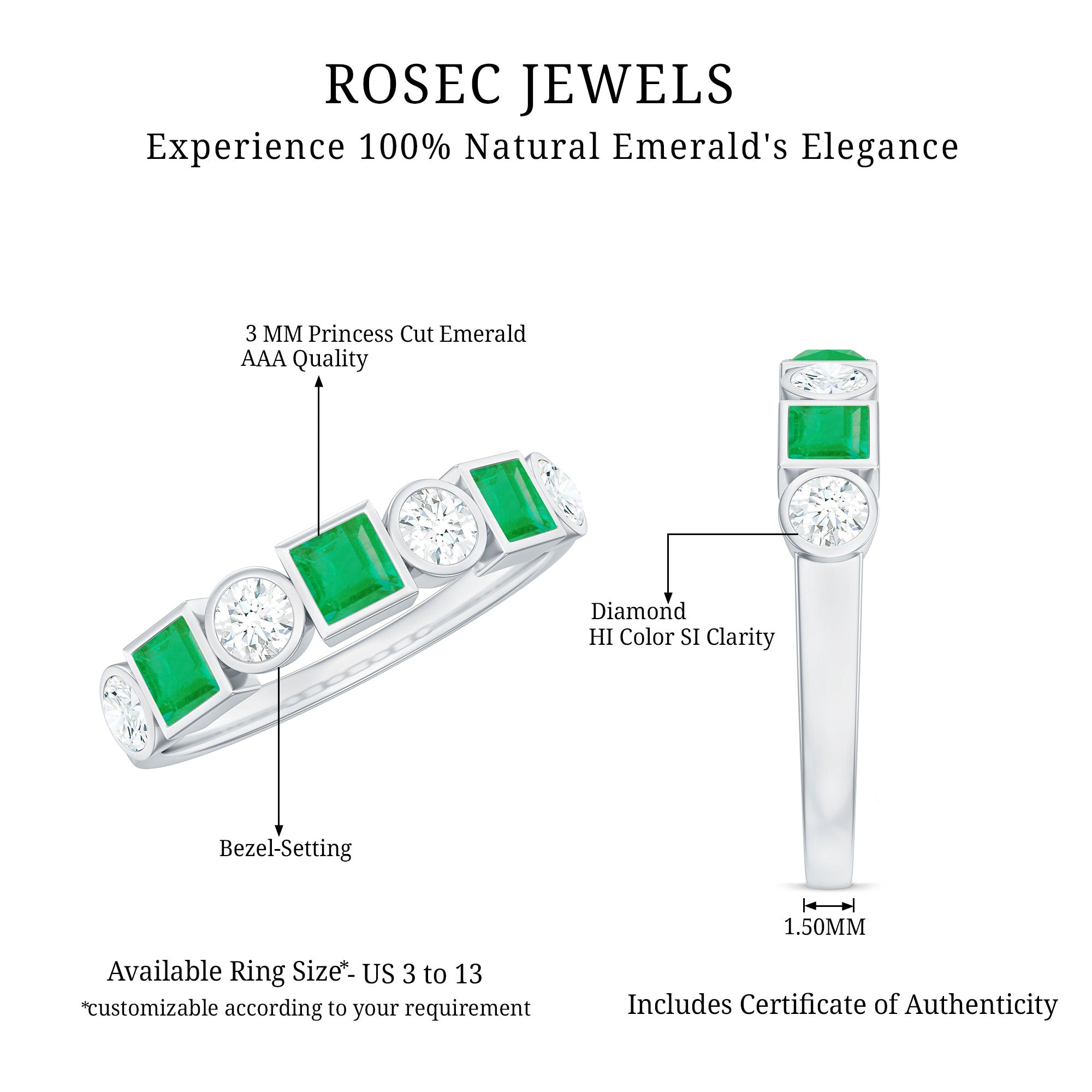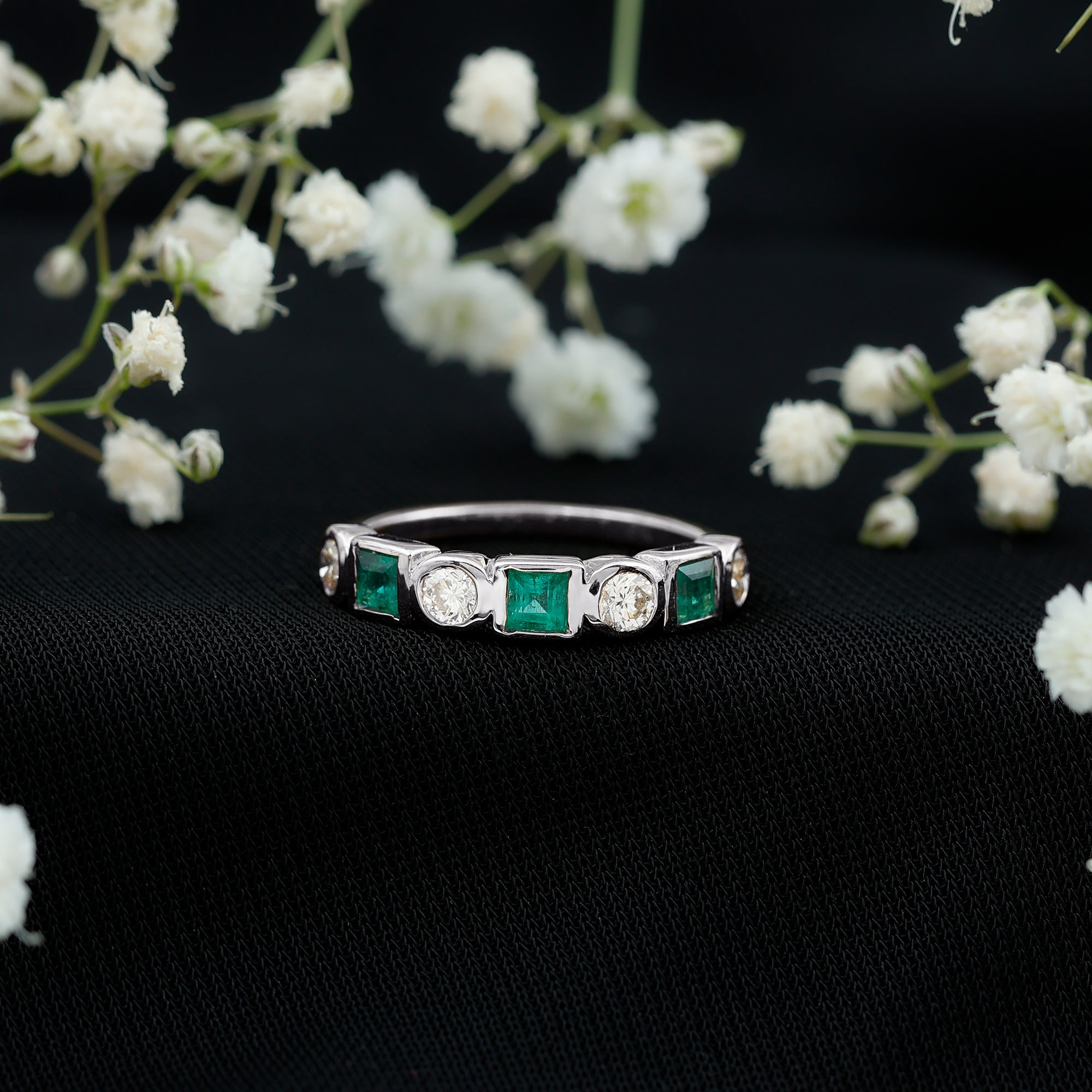 Real Emerald and Diamond Half Eternity Wedding Band in Bezel Set