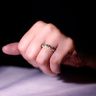 Add a touch of timeless beauty to your hand with this elegant Emerald Eternity Ring. The design features a delicate band adorned with a row of sparkling round emeralds, each stone shining with vibrant green brilliance. Between the emeralds, small shimmering diamonds are placed to add a subtle sparkle, enhancing the look of this graceful Wedding Anniversary Ring. This half eternity ring is crafted with care from high-quality materials, making it both durable and comfortable for everyday wear. Its smooth band sits beautifully on the finger, offering a perfect mix of elegance and ease. The design carries a special meaning, each emerald represents love, devotion, and lasting connection, making this Stackable Eternity Ring a thoughtful choice for weddings, anniversaries, or as a personal reminder of a cherished bond. Its simple yet luxurious style allows it to be worn alone for a classic look or stacked with other rings for a modern touch. Whether given as a symbol of commitment or worn to celebrate personal milestones, this Emerald and Diamond Wedding Band captures the spirit of lasting love. It is a piece that combines beauty, meaning, and comfort, designed to be treasured and worn for years to come.