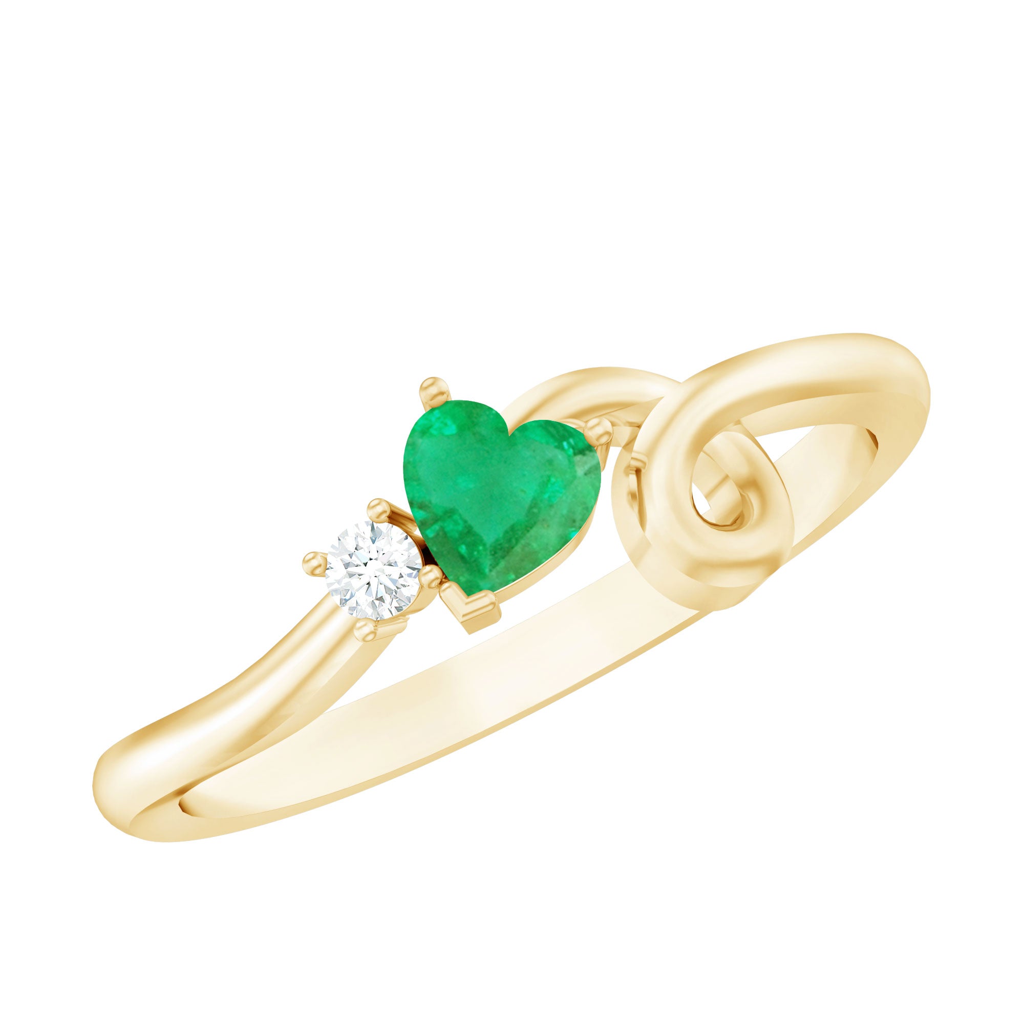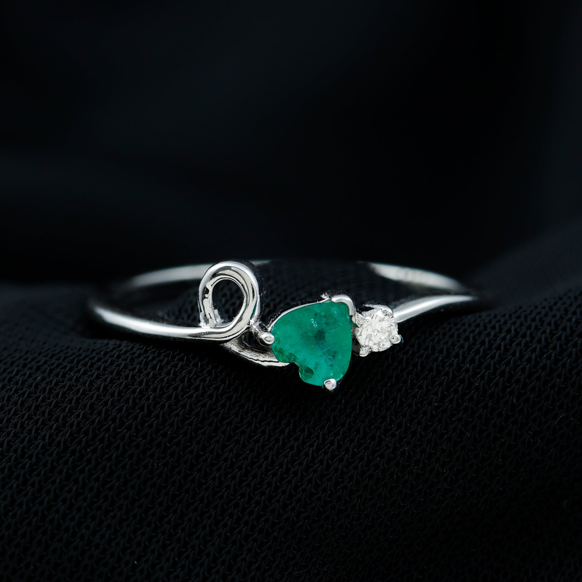 Real Emerald and Diamond Heart Promise Ring with Twisted Shank