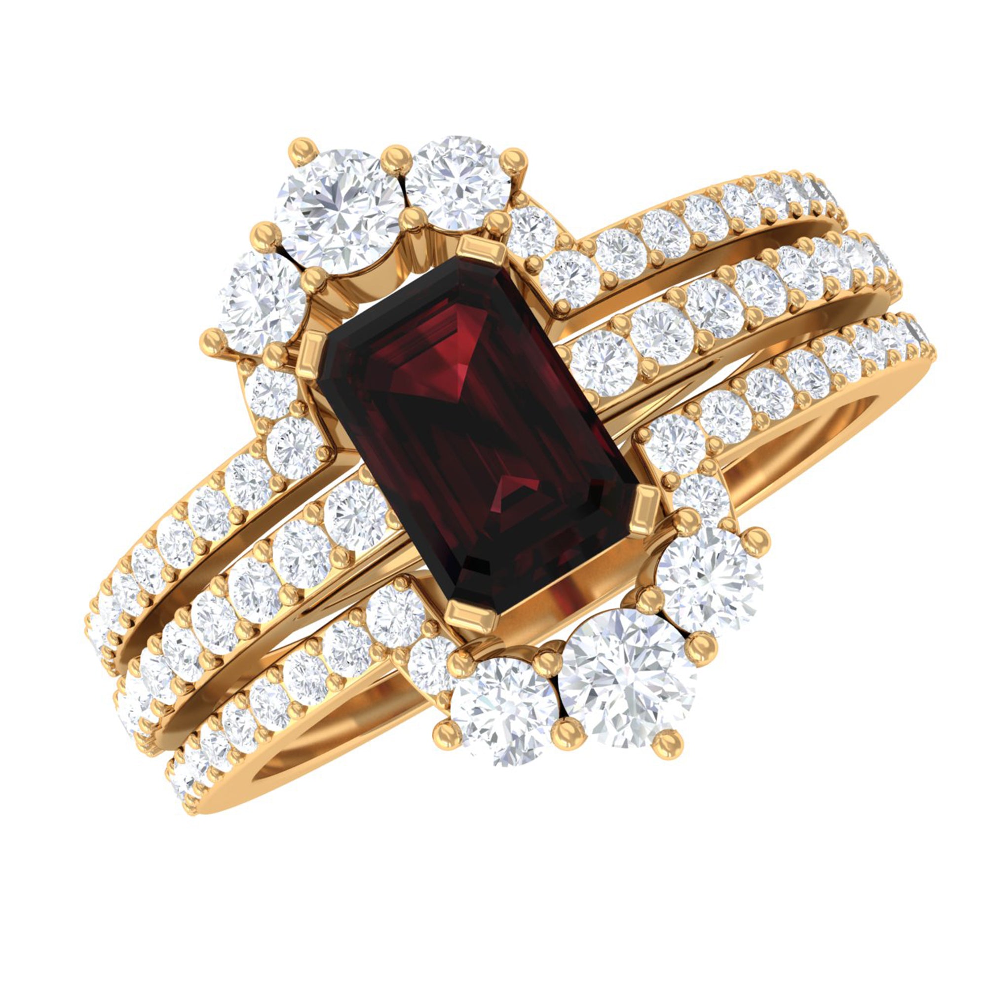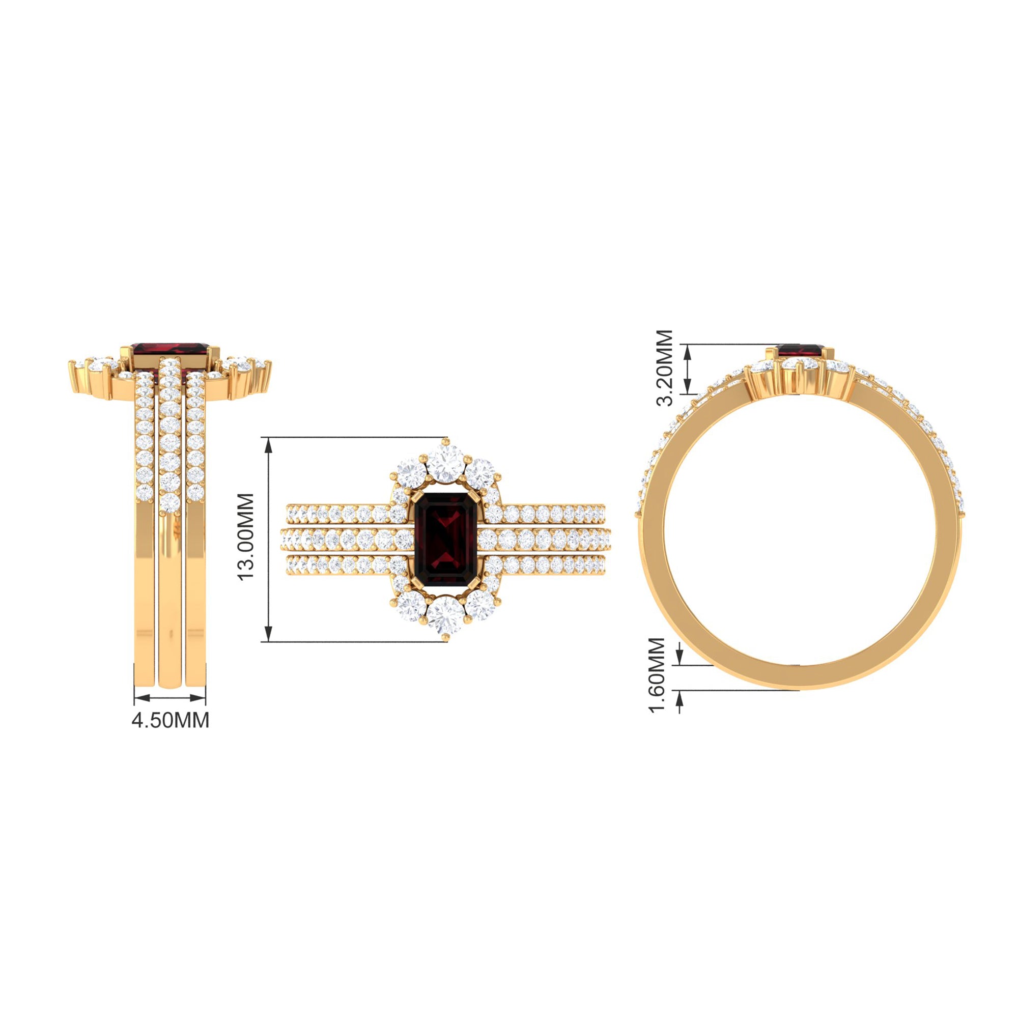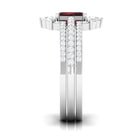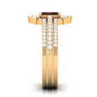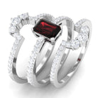 Real Emerald Cut Garnet Diamond 3 Piece Bridal Ring Set