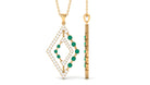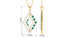 This stunning Rhombus Pendant showcases a genuine Emerald, beautifully crafted by our designer in a luxurious prong setting. The Emerald pendant is embellished with Diamond gemstones, adding an extra touch of elegance and sparkle. Elevate your jewelry collection with this one-of-a-kind piece.