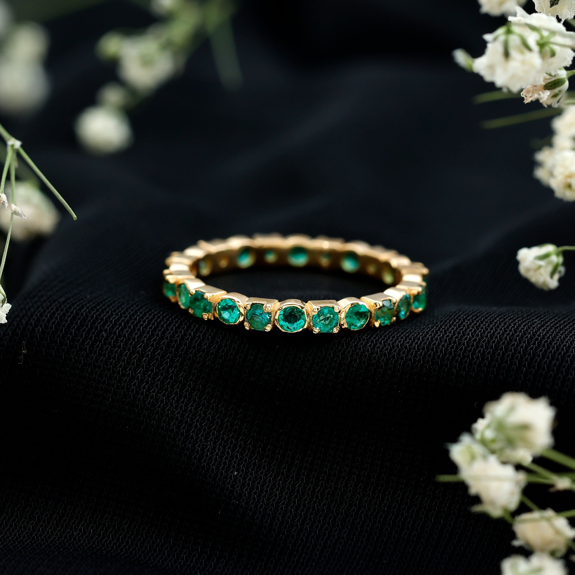 The Real Emerald Eternity Wedding Band Ring for Women showcases a refined design where vibrant emerald gemstones encircle the band in a continuous arrangement. This eternity style creates a seamless line of color and brilliance, giving the ring a balanced and elegant appearance that symbolizes enduring commitment.
