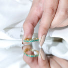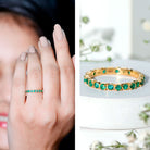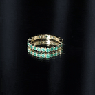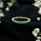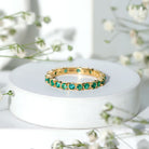 Timeless design meets modern elegance in the Emerald Eternity Band, a ring that beautifully blends geometric symmetry with the natural charm of lush green gemstones. Crafted with precision, it features a captivating pattern of alternating square and round shapes, each set with AAA quality emeralds that radiate vibrant hues. Known as the birthstone for May, emeralds symbolize love, growth, and renewal, making this Stackable Wedding Band a meaningful choice for special occasions or as a personal keepsake. The full eternity design forms an unbroken circle of gemstones, representing everlasting commitment and harmony. Its smooth, comfortable fit makes this Emerald Wedding Band perfect for everyday wear while maintaining an elegant and luxurious appeal. Versatile in style, the Emerald Anniversary Ring can be worn alone for a refined, minimalist look, paired with an engagement ring for a classic bridal set, or stacked with other bands to create a unique, layered statement. Whether given as a wedding, anniversary, or birthday gift, it serves as a lasting symbol of devotion and sophistication.
