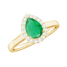 Real Emerald Teardrop Engagement Ring with Diamond Halo
