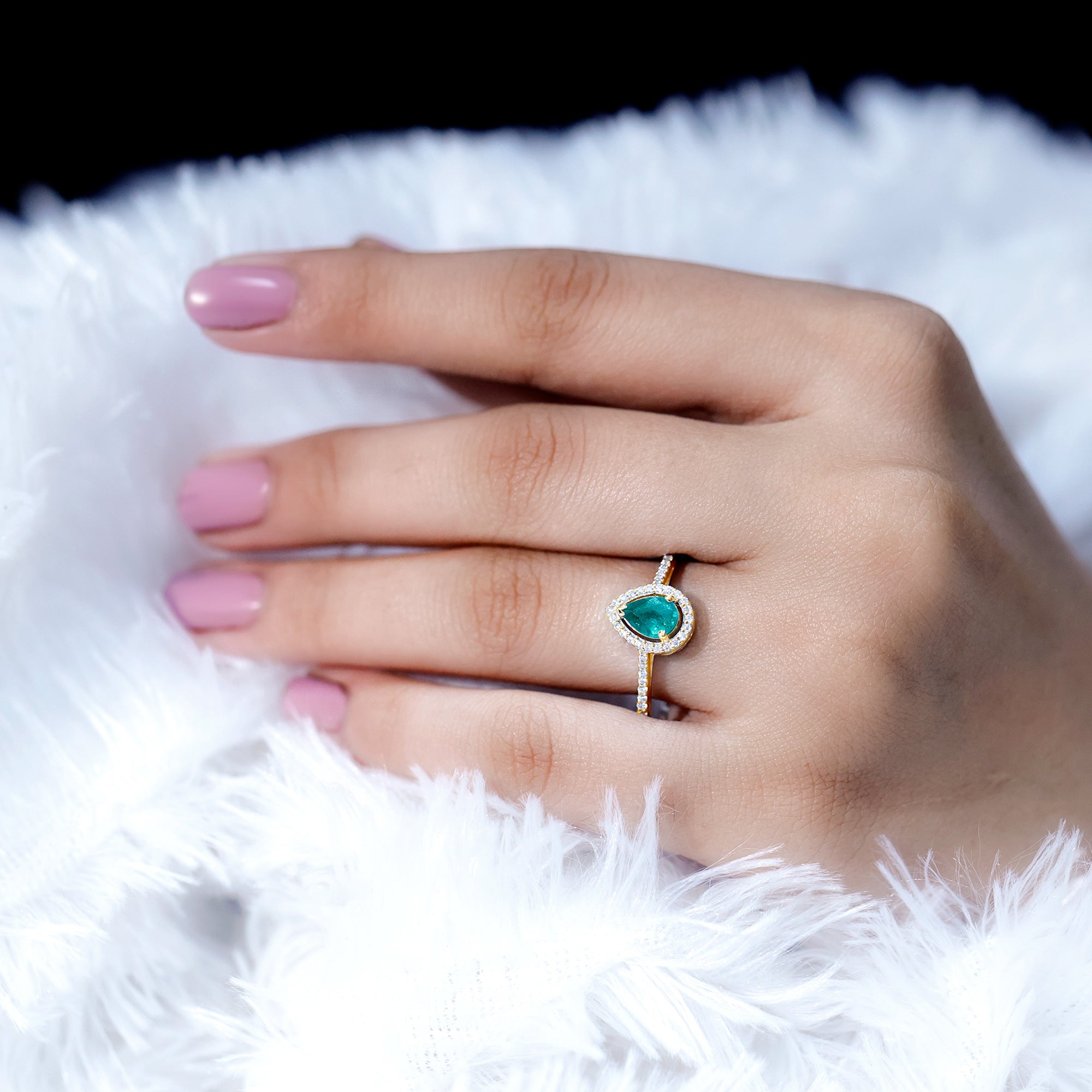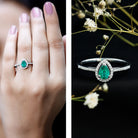 Certified Emerald Teardrop Engagement Ring with Moissanite Halo
