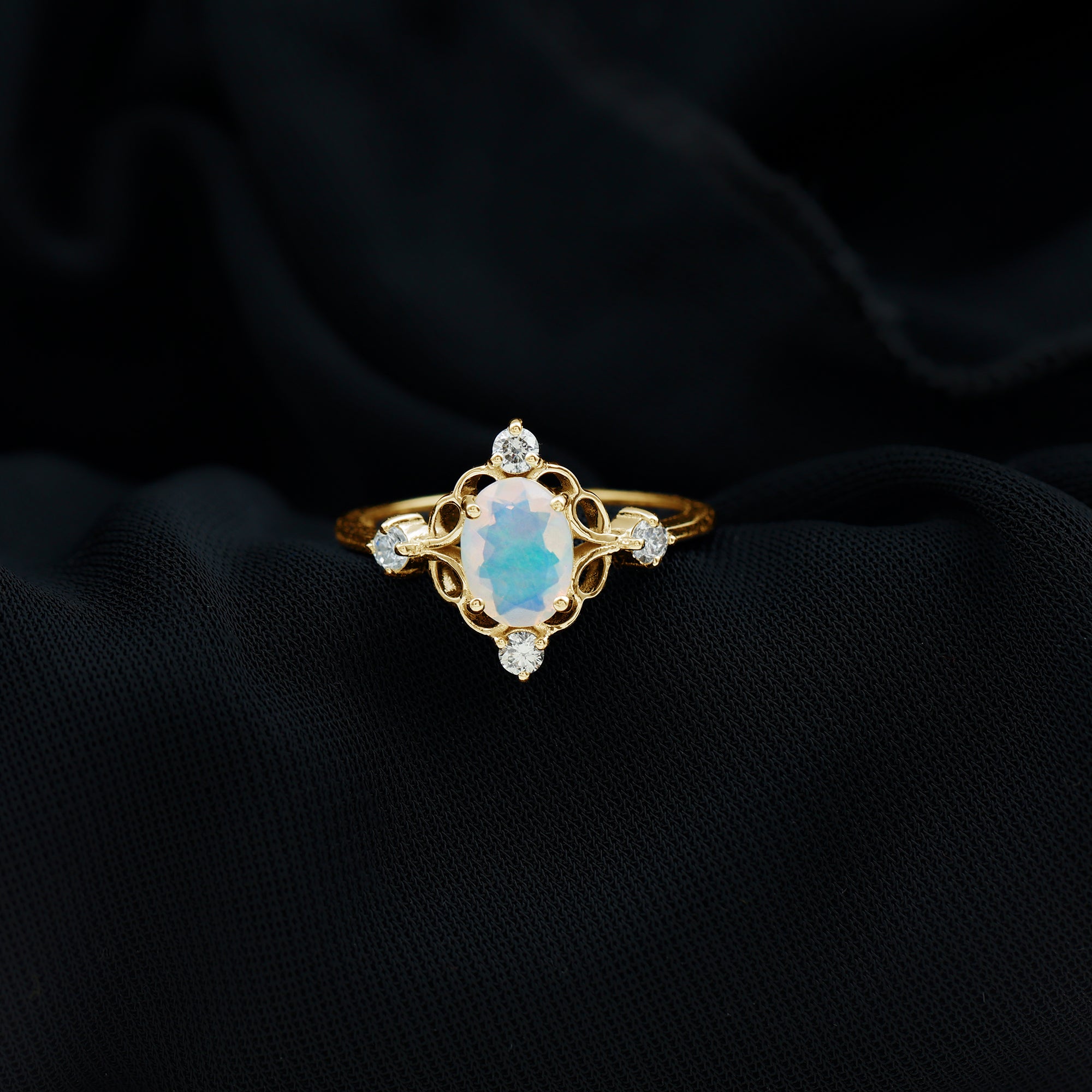 Make your special moment unforgettable with this breathtaking Ethiopian Opal Engagement Ring, a symbol of timeless love and brilliance. Designed to turn heads and capture hearts, this elegant piece features a 6x8 MM oval cut Ethiopian Opal at the center, sparkling with fire and clarity. Set securely in prongs, the centerpiece is encircled with unique twisted style metal and 4 round shape diamonds set surrounding the center stone which enhancing the sparkle of the ethiopian opal, adding depth and radiant sparkle from every angle. Whether you are planning a proposal or celebrating a milestone, this Engagement Ring delivers a modern twist on a classic style, simple, elegant, and full of charm. Made with expert craftsmanship and available in various metal options, this Oval Engagement Ring mirrors the beauty of a timeless design. Offered in US sizes 3 to 13, we also include a free ring sizer to help you find your perfect fit, making the process stress-free. Whether you are shopping for your girlfriend, fiancee, wife, or mother, this ring is sure to leave a lasting impression. Presented in a beautiful signature jewelry box, it is ready to gift for any occasion, engagements, anniversaries, birthdays, or simply to show your love. With its classic elegance and unmatched sparkle, this Designer Engagement Ring is a forever favorite, made to shine just as brightly as your love story.