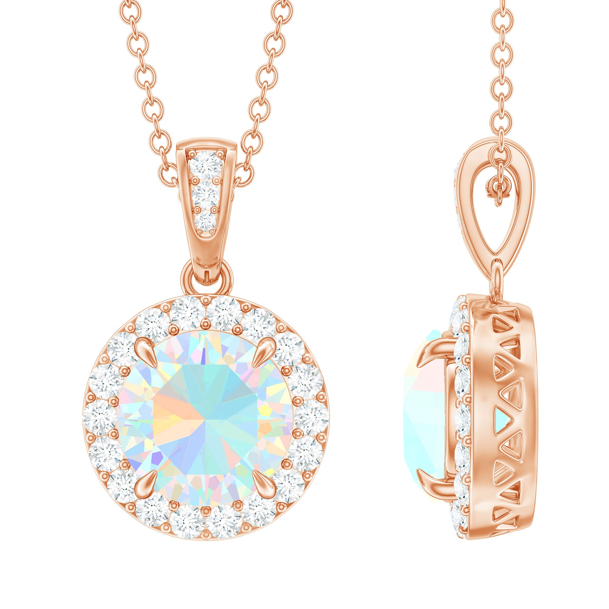 Real Ethiopian Opal Necklace With Moissanite Halo