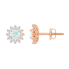 These timeless Flower Stud Earrings will beautifully elevate your looks. They are embellished with a Round Shape Ethiopian Opal secured in Prong Setting embraced with Round Diamonds as a halo. The Opal Stud Earrings are crafted with Solid Metal and will add glamour to every moment and make it worth celebrating. These Opal Earrings are an elegant pair that you can wear with any ensemble for years and years to come.