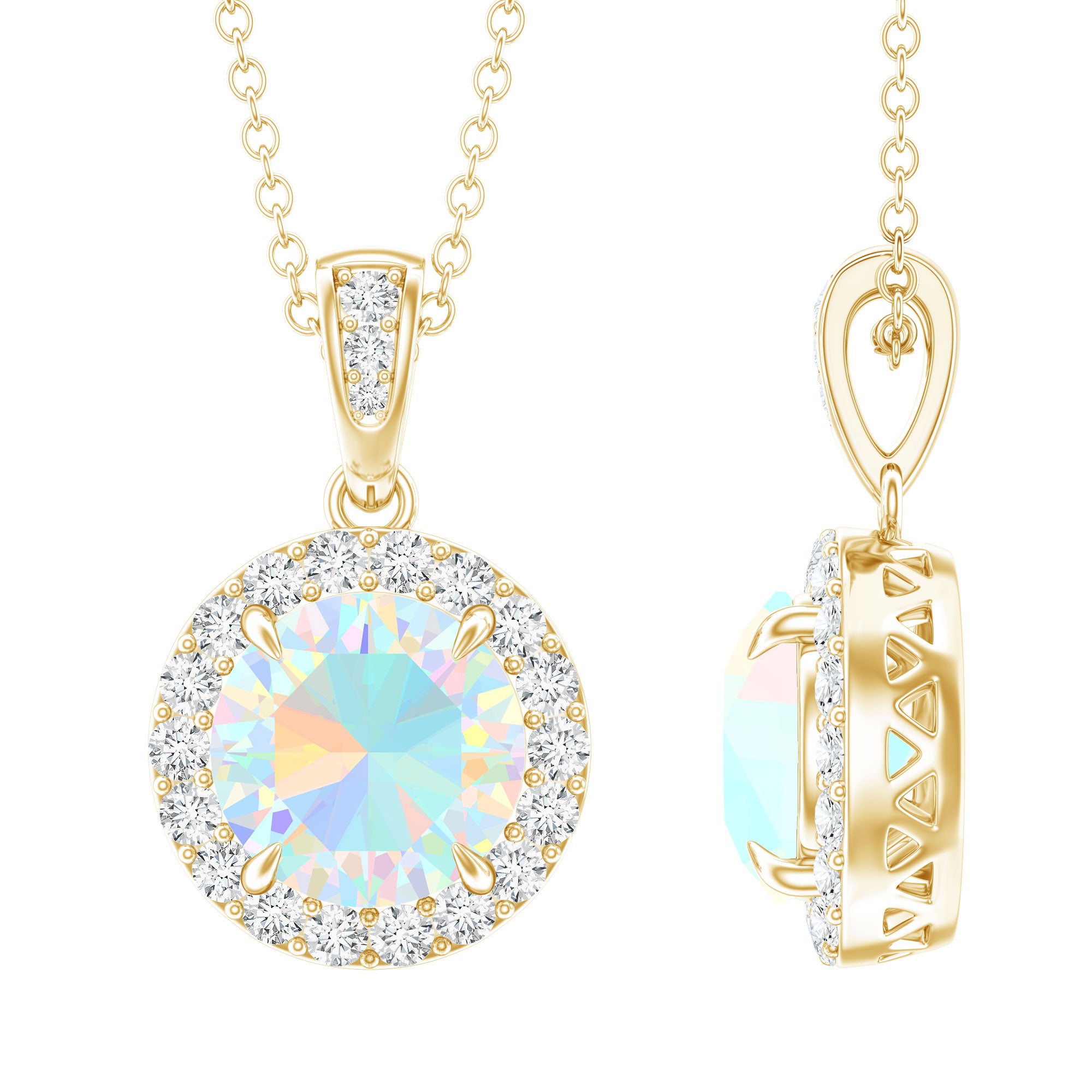 Real Ethiopian Opal Necklace With Moissanite Halo