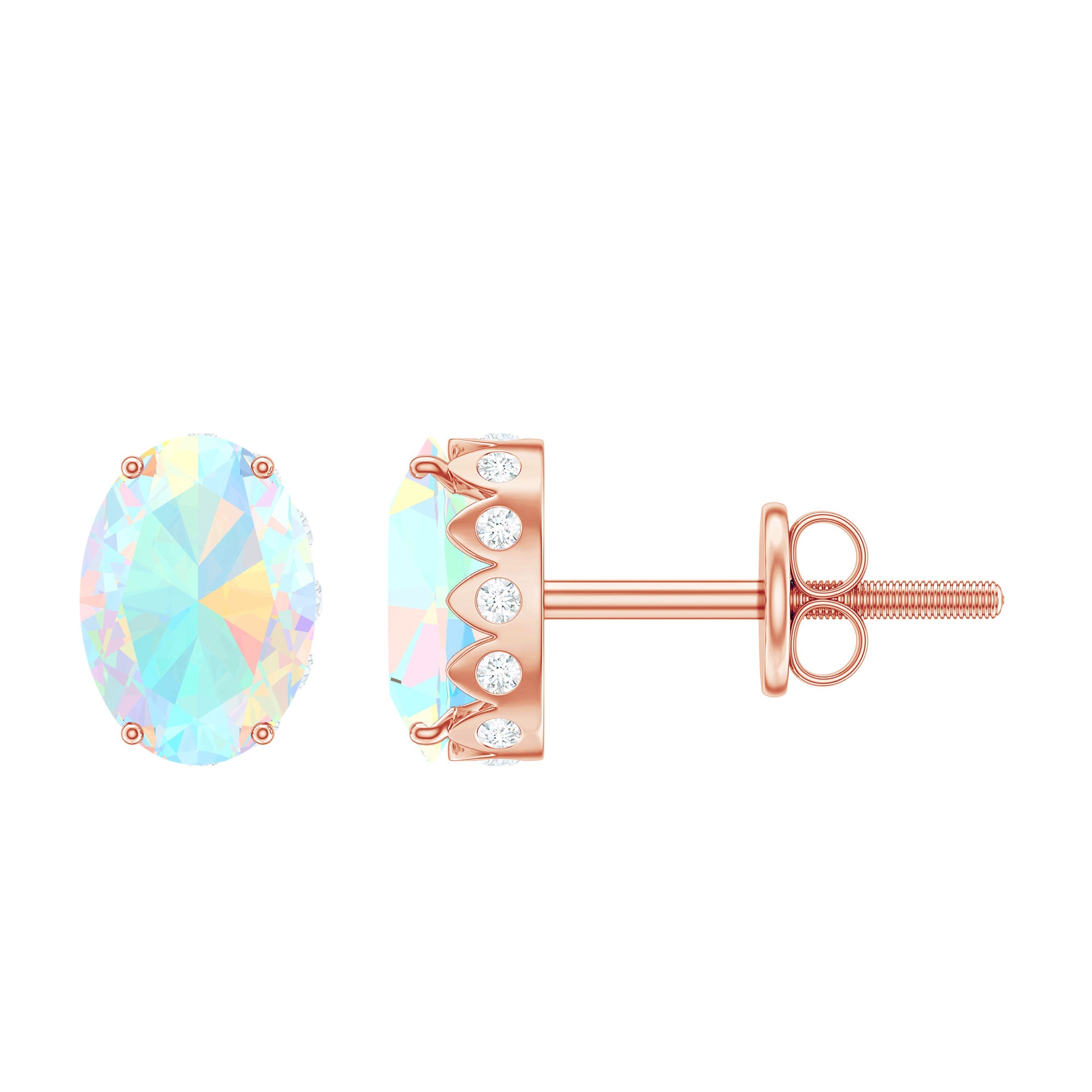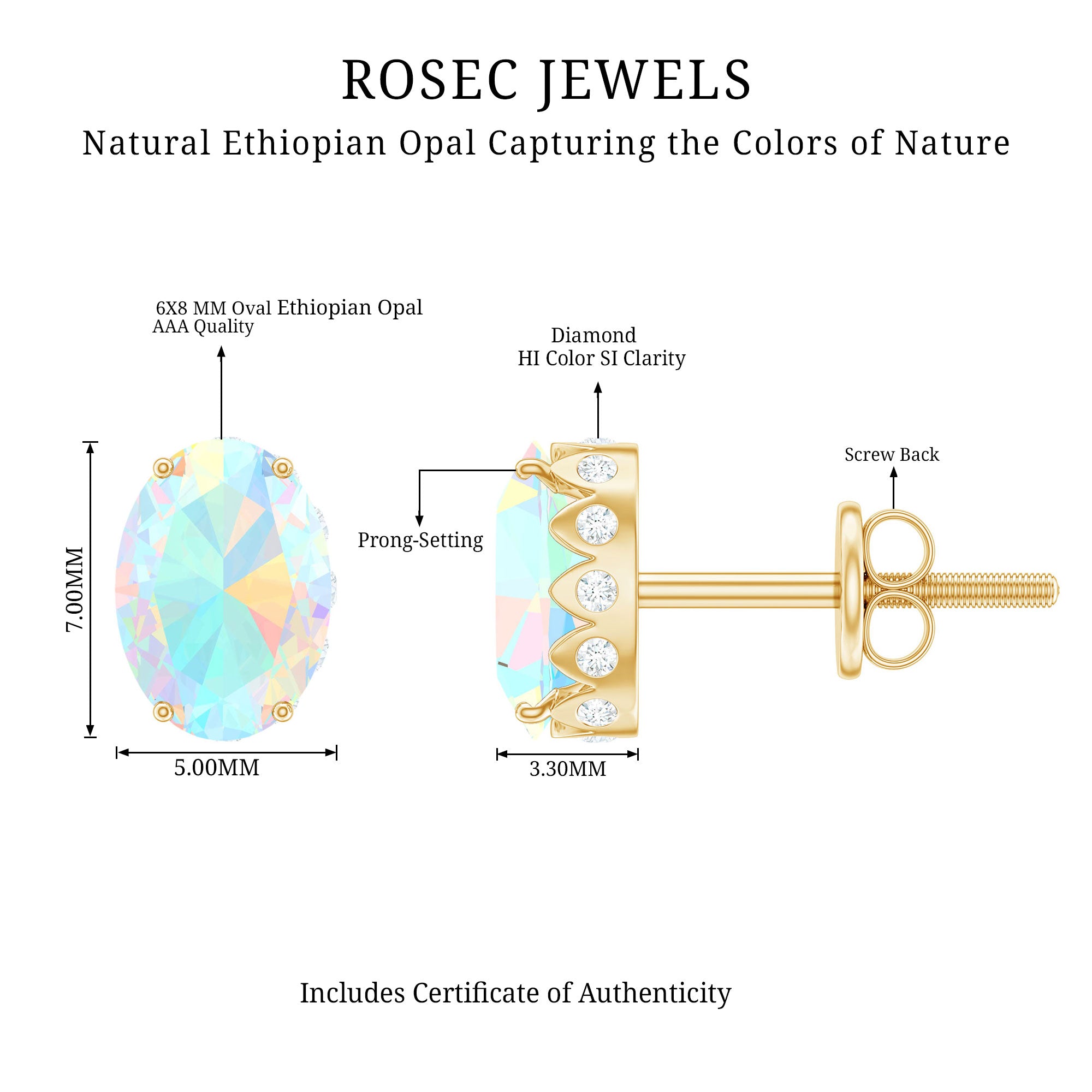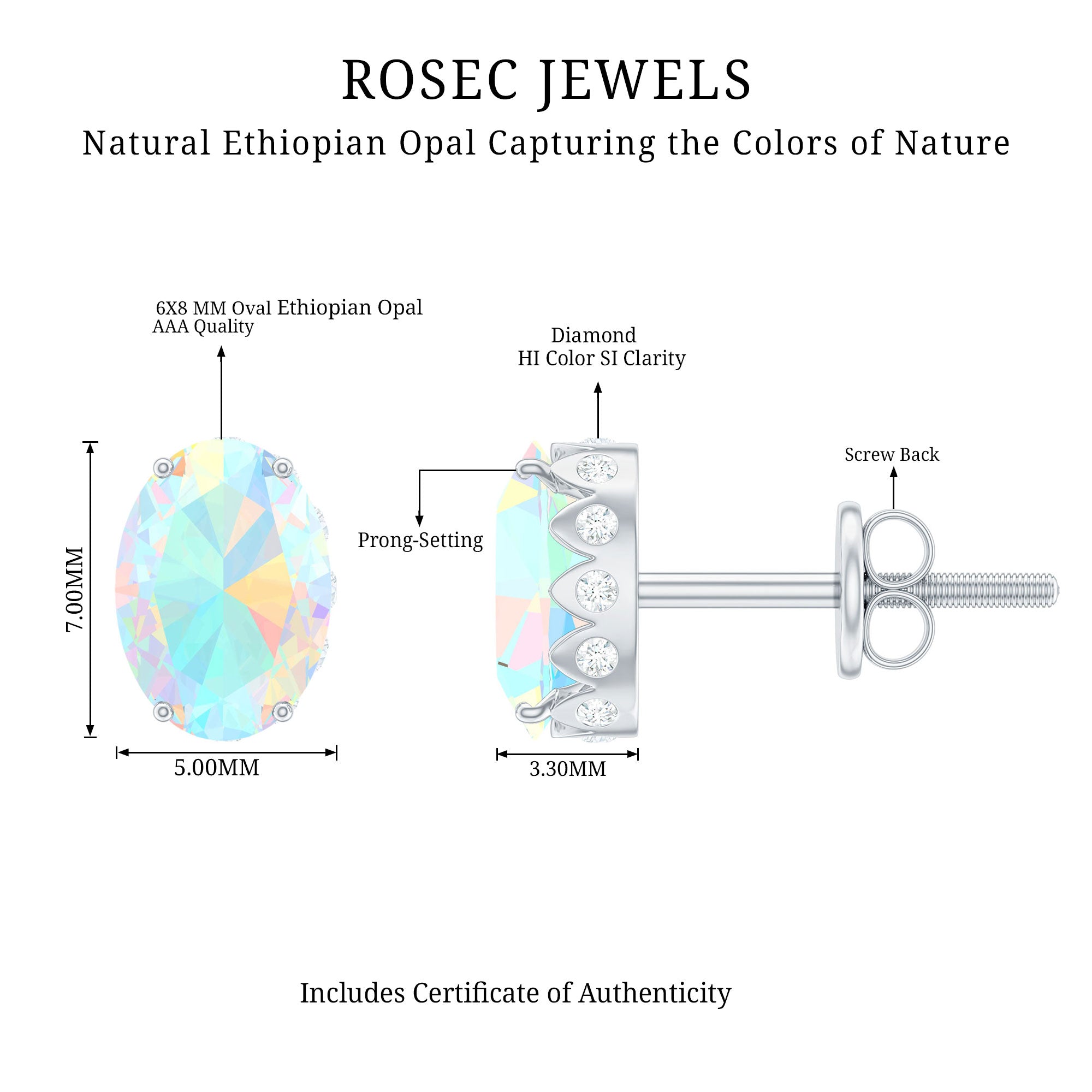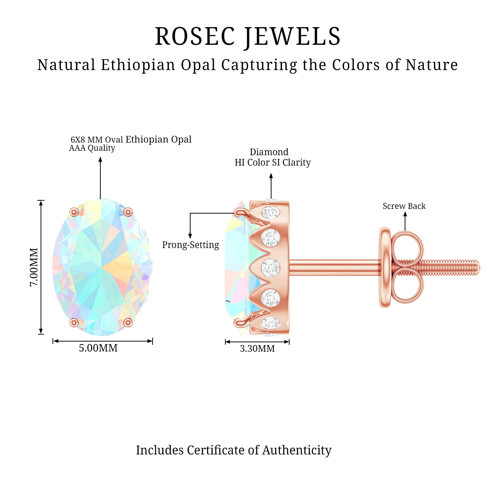 Real Ethiopian Opal Solitaire Stud Earrings with Diamond
