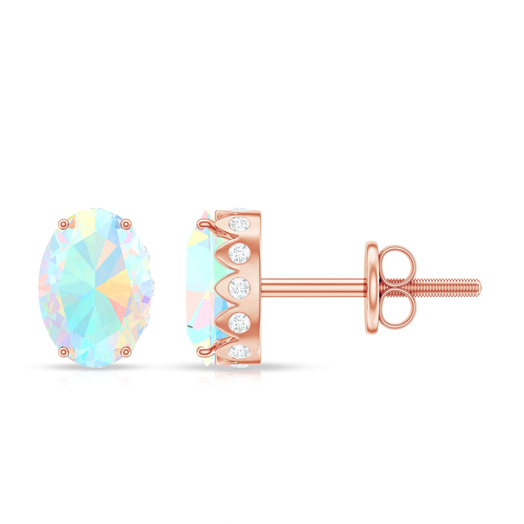 She is your soul and heart express what you feel about her while presenting these rainbow-radiating Ethiopian Opal Stud Earrings. The Oval Shape Ethiopian Opal sits as Solitaire in Prong Setting with Diamond studded beautifully on these Opal Earrings. Giving an enchanting appeal to these Solitaire Studs with a great combination of Opal and Diamond. Make your collection even more brighter with these everyday fit Solitaire Earrings.