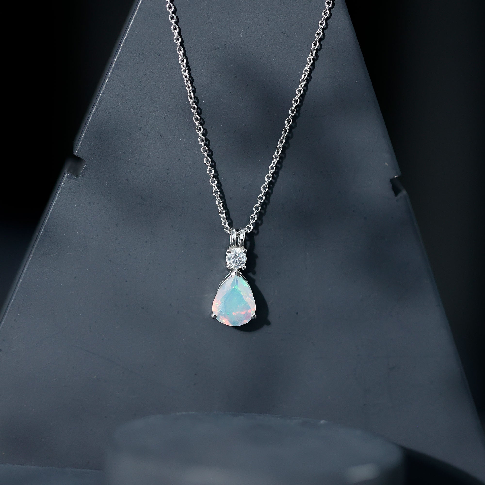 Real Ethiopian Opal Teardrop Necklace with Moissanite