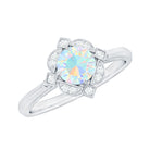 Romantic, radiant and dripping in vintage charm, this Ethiopian Opal Engagement Ring is a timeless treasure with a touch of magic. This Fine Ring features a mesmerizing 5 mm Round Shape Ethiopian Opal set in Claw Setting, glowing with an ethereal play-of-color. Surrounding it is a glittering Diamond Halo, delicately set in an intricately detailed vintage inspired design that whispers of old-world romance. Every element of this Vintage Looking Engagement Ring is thoughtfully crafted to capture the elegance of a bygone era while celebrating the uniqueness of your love story. The Diamond stones add just the right amount of sparkle, perfectly complementing the mystical glow of Opal, while the antique style design gives the piece a regal feel. Whether you are drawn to the symbolism of the opal or simply love the vintage aesthetic, this Opal Diamond Engagement Ring makes a stunning statement of everlasting love. Arriving in a signature jewelry box, this Halo Engagement Ring with Opal is ready to become a cherished keepsake or the start of your forever. For the bride who dreams in color and adores a little nostalgia, this Opal and Diamond Ring is where vintage elegance meets celestial beauty.