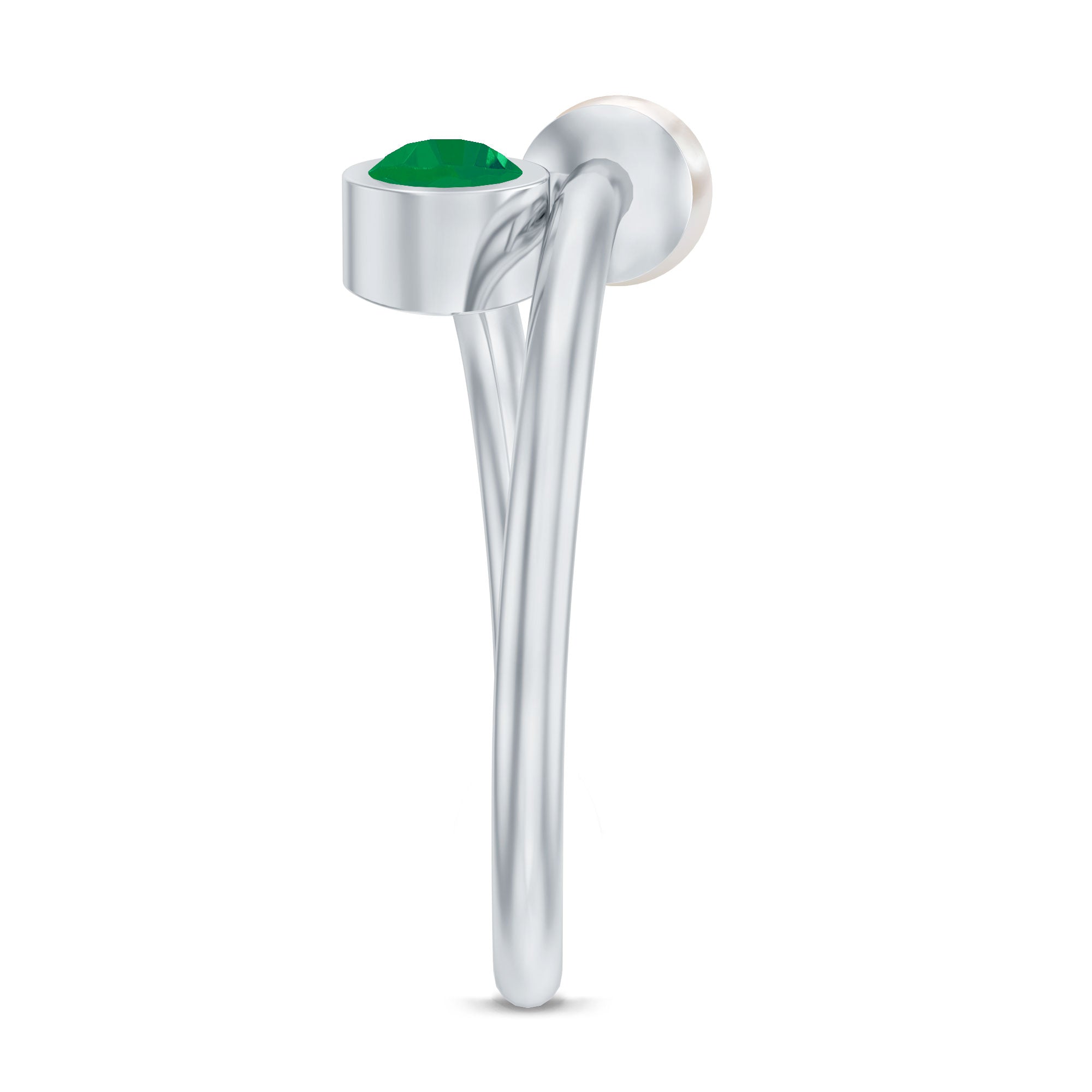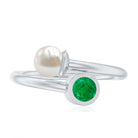 Real Freshwater Pearl and Emerald Toi et Moi Promise Ring