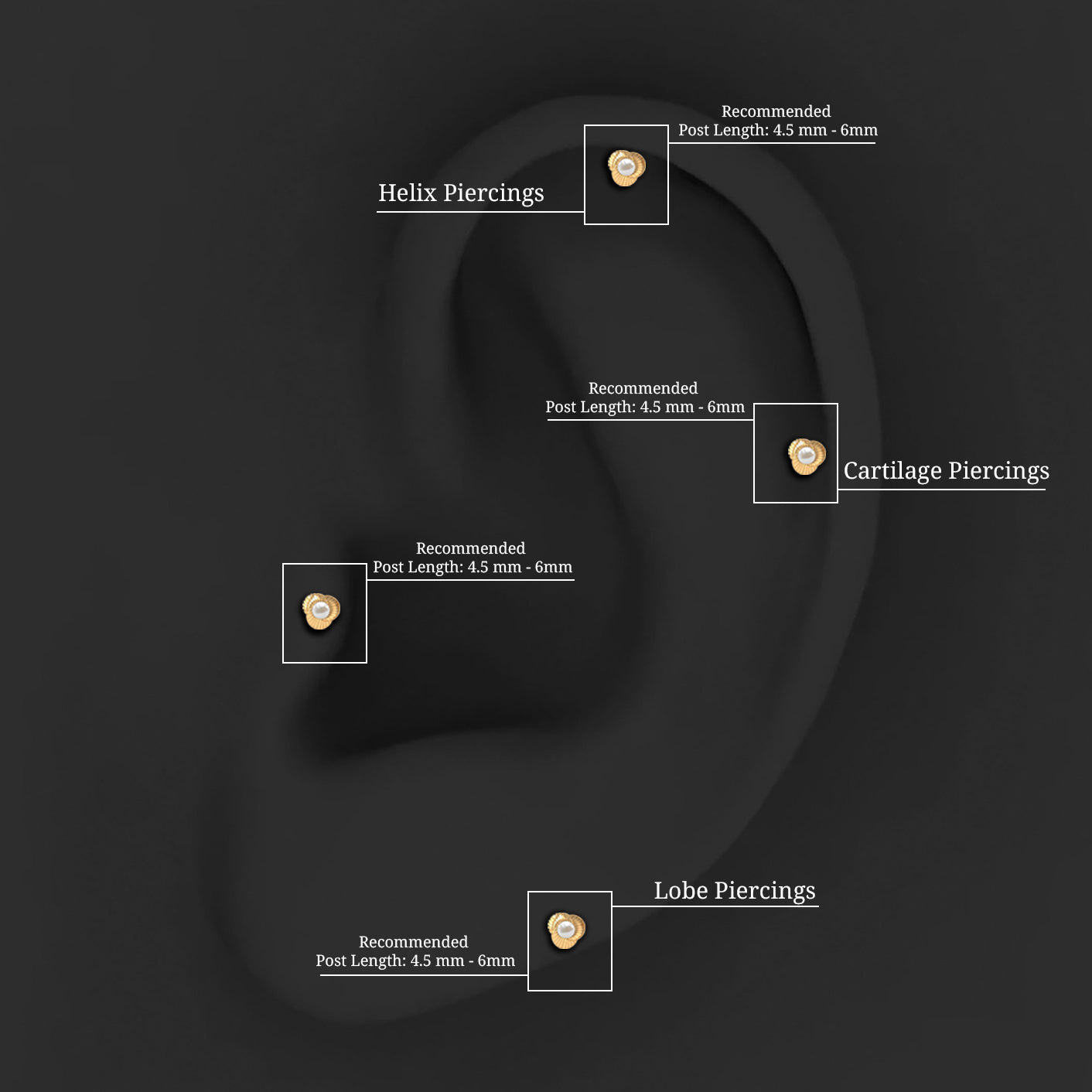 This Freshwater Pearl Floral Earring is going to be your best friend! You know you can never go wrong with studs, this Earring features a Round Freshwater Pearl in the center of a floral design. Whether you wear it on your lobe piercings, helix, or cartilage. We recommend you pair it with a different piercing that'll make for a perfect stack.If you are new to stacking ears, opt for a goes-with-everything of a small stud like this Pearl Earring. Classic pearl stud will go with everything, from casual wear to date night outfits.