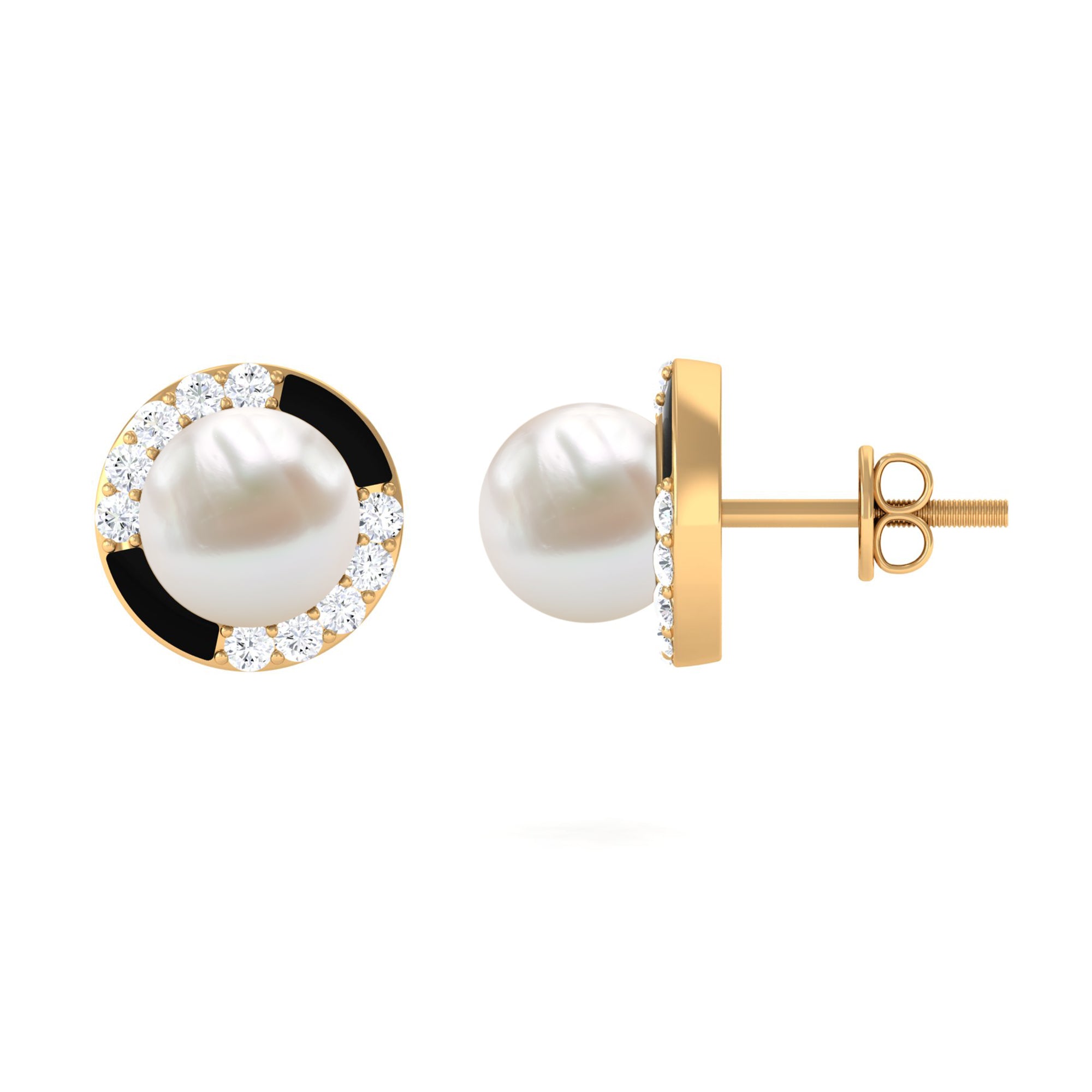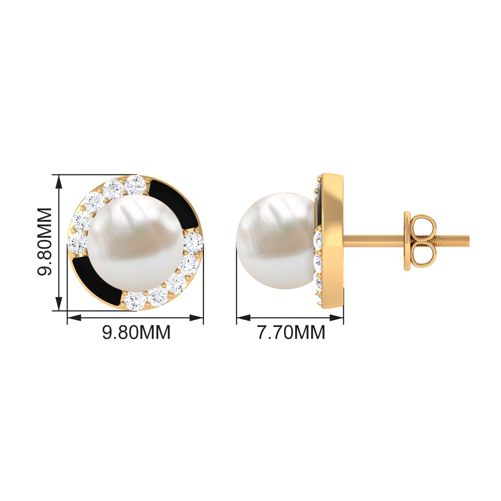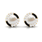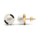 With ease and elegance, these Pearl Stud Earrings will complement your lovely attire anytime. Showcasing Round Shape Freshwater Pearl and Round Shape Diamonds studded as Halo in Pave Setting while Black Enamel adds a pop of color. Mix and match these gorgeous Pearl Earrings with casual and party outfits to create unique and outstanding looks.