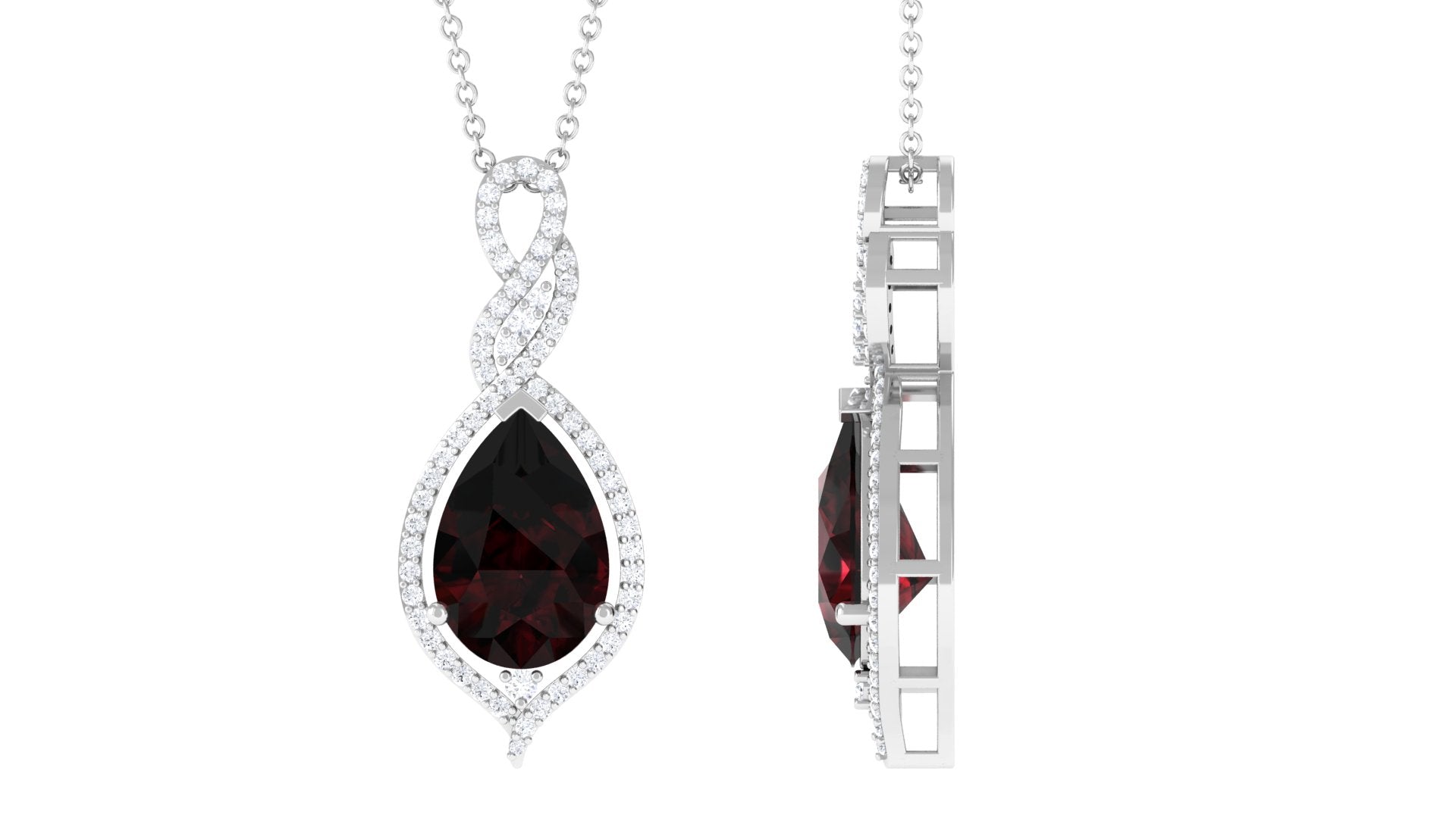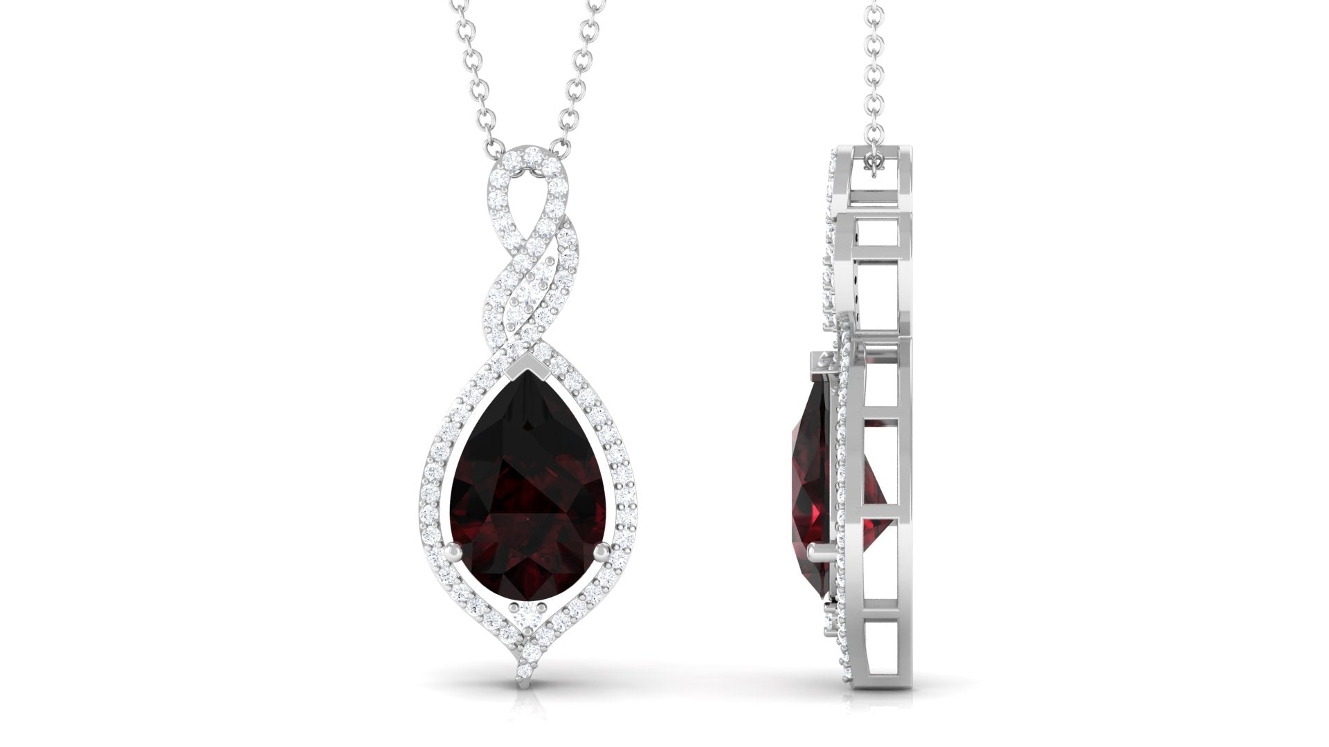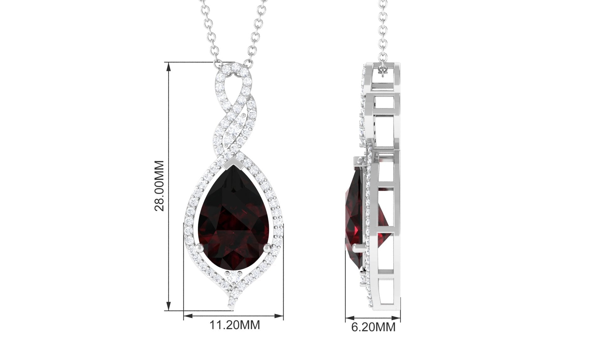 Real Garnet and Diamond Teardrop Dangle Pendant