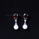 Real Handpicked Pearl and Garnet Bridal Drop Earrings