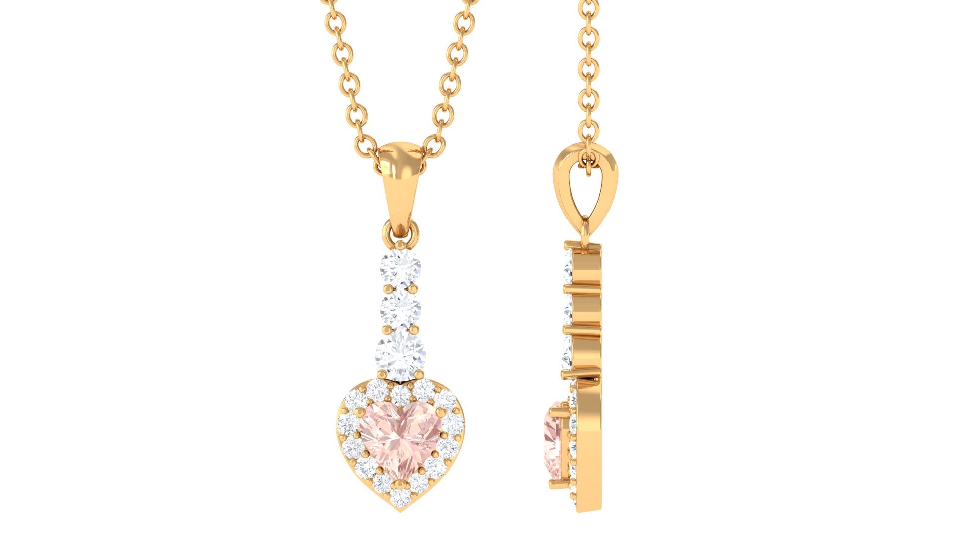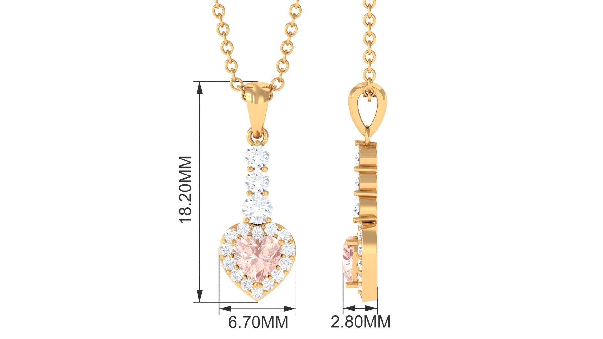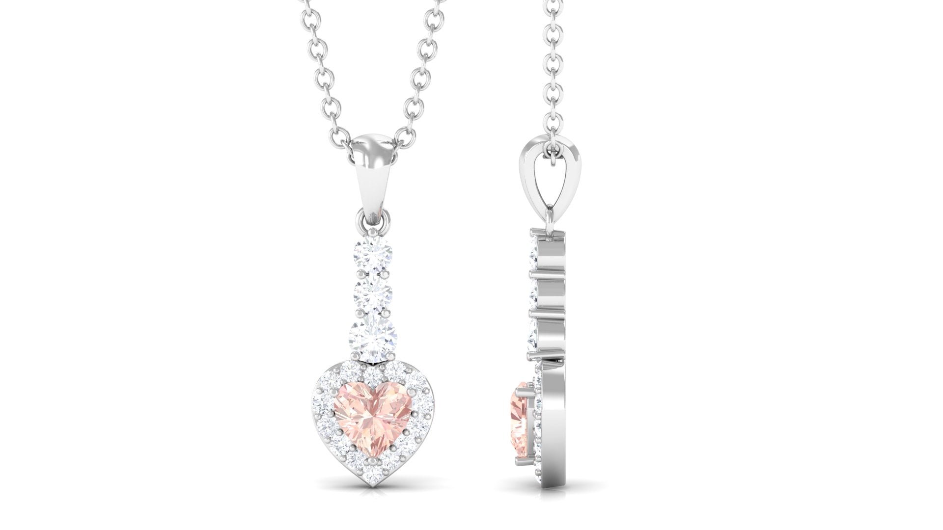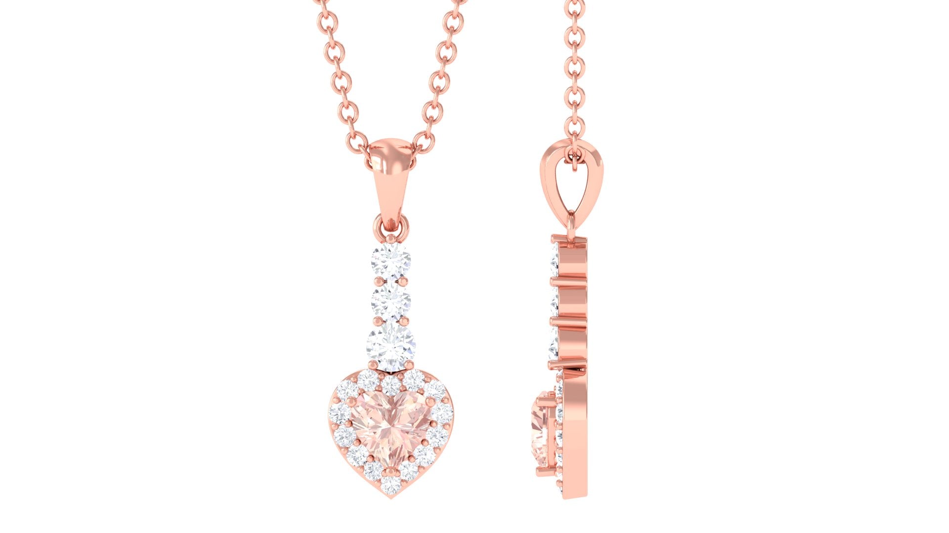 Real Morganite Heart Drop Pendant Necklace with Diamond